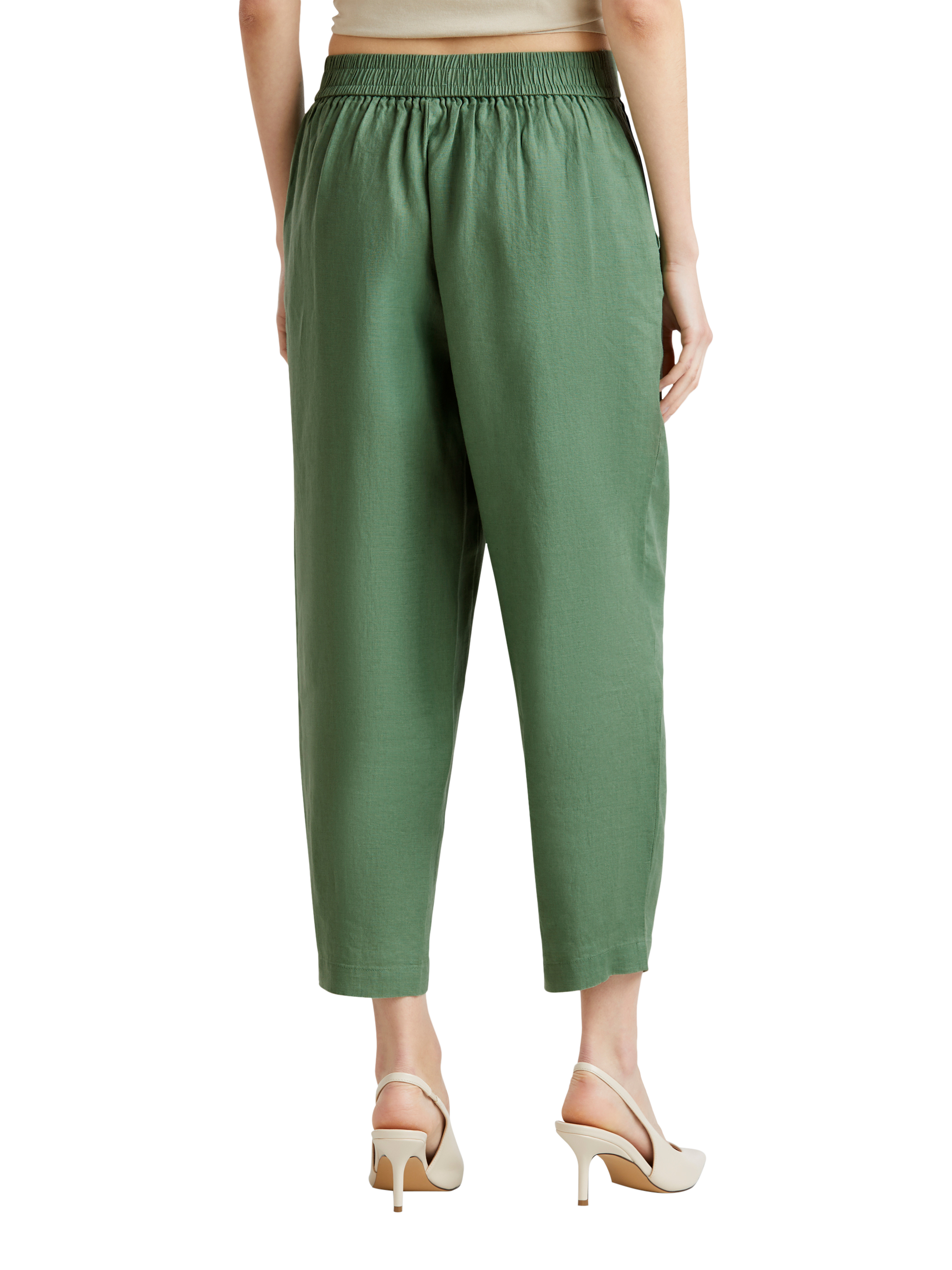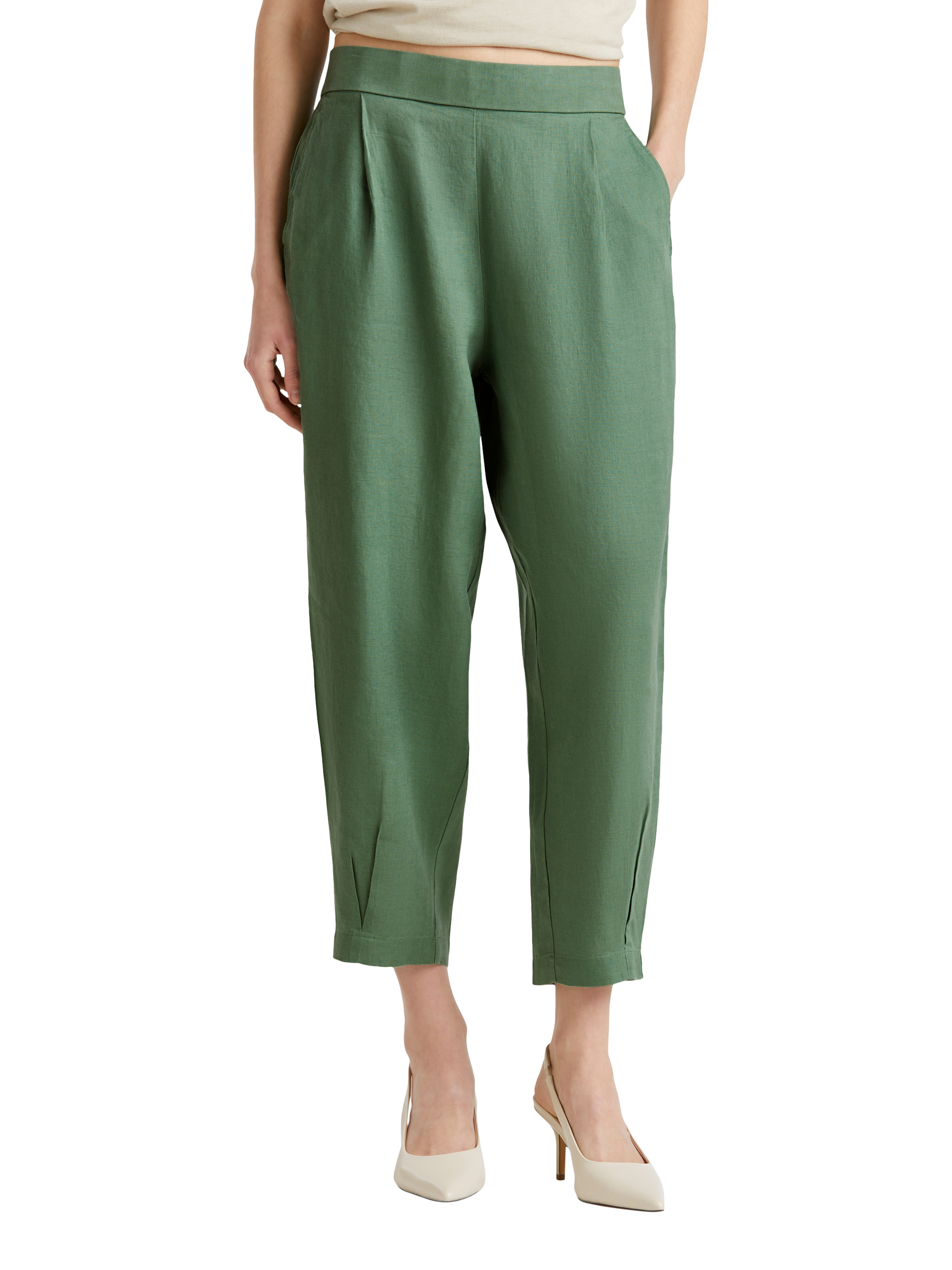 Naturally breathable in pure linen, this pair of tapered trousers by Benetton sit naturally on the hips and fall to a cropped hem.
