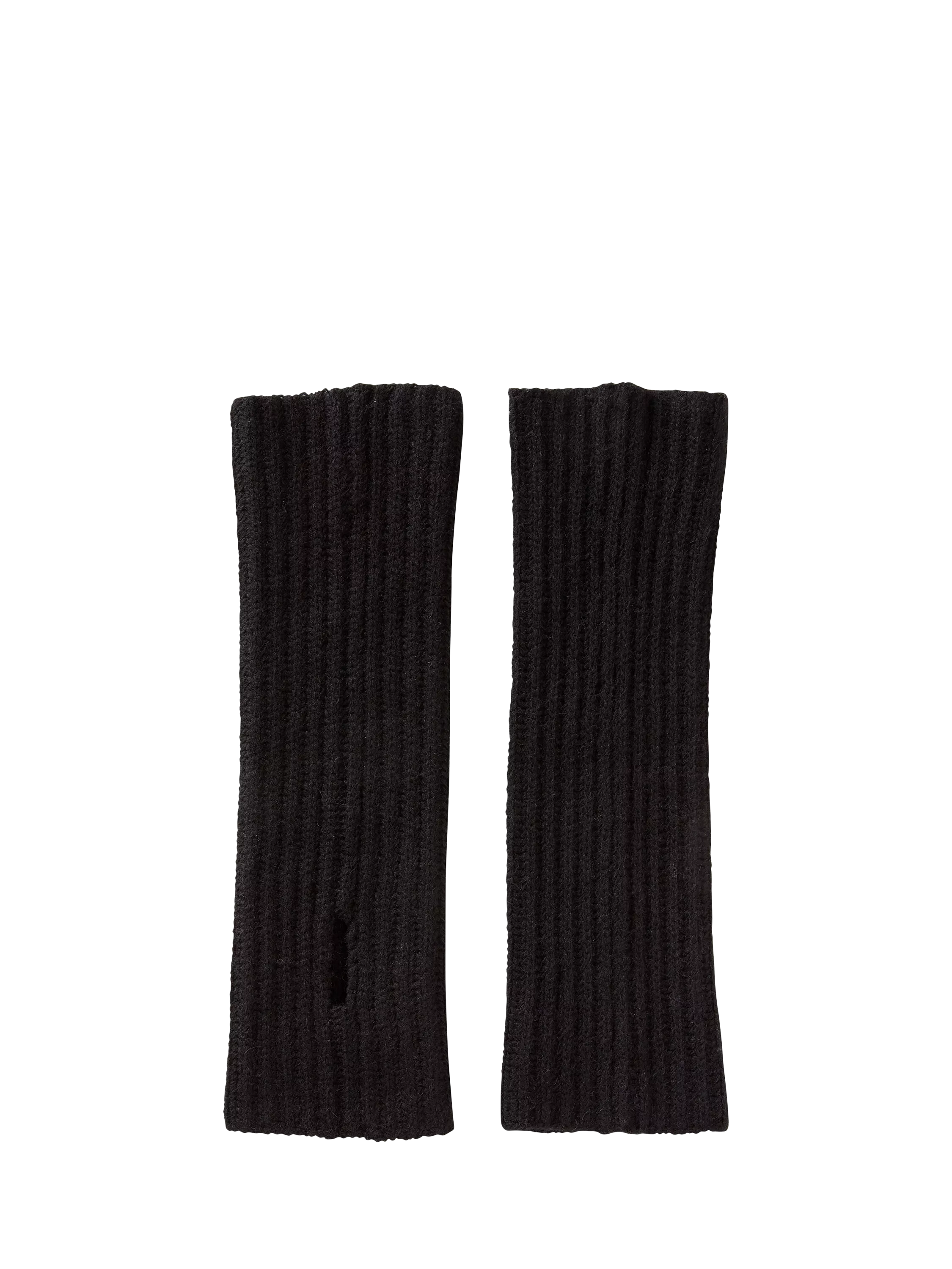 Elbow-length arm warmers with thumb hole, knitted in fisherman's rib stitch. Ideal for casual settings with optimal comfort.