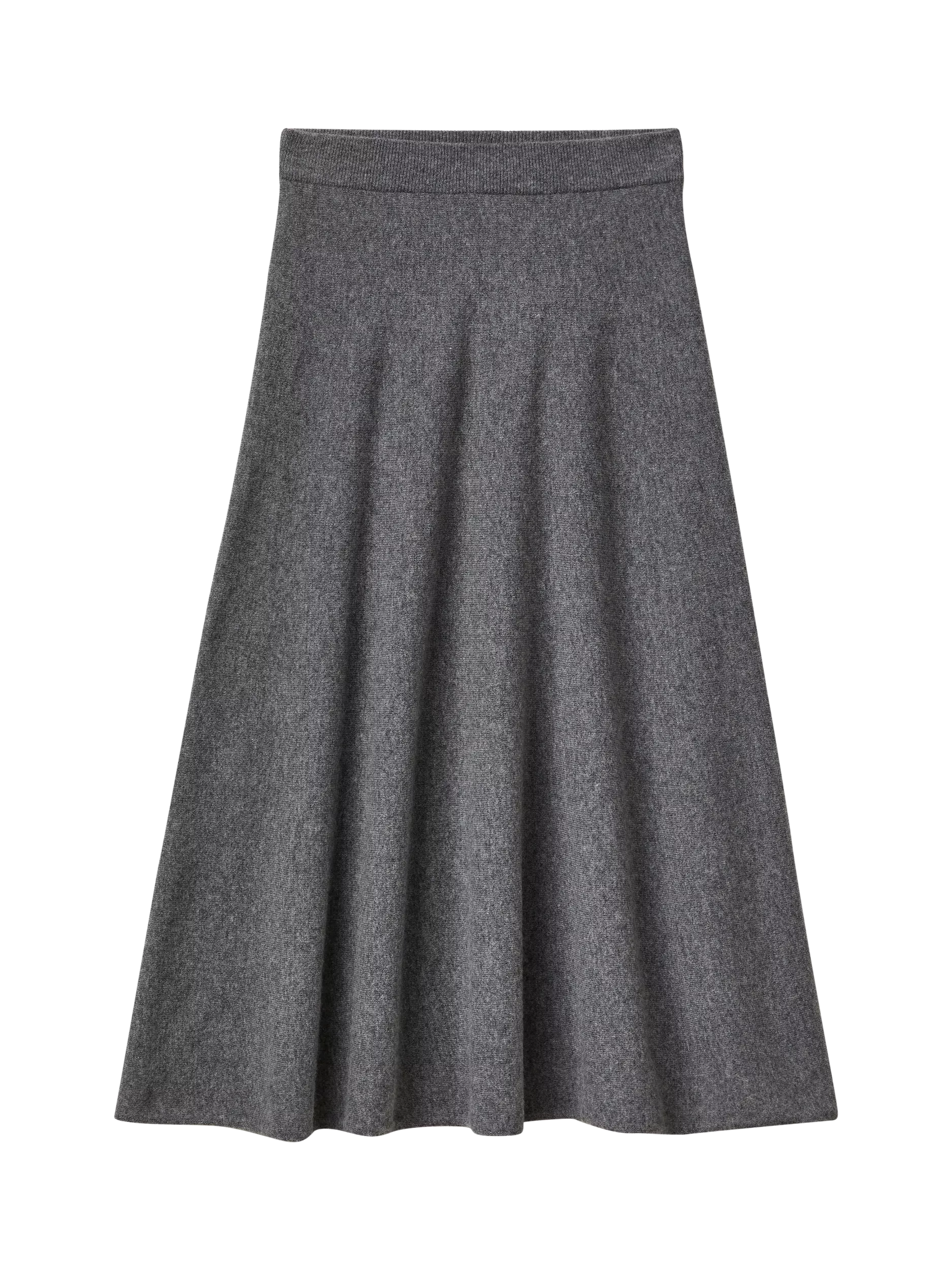 An elegant ankle-length skirt featuring a flared line and horizontal jersey knitting with an internal elastic tape for comfort.
