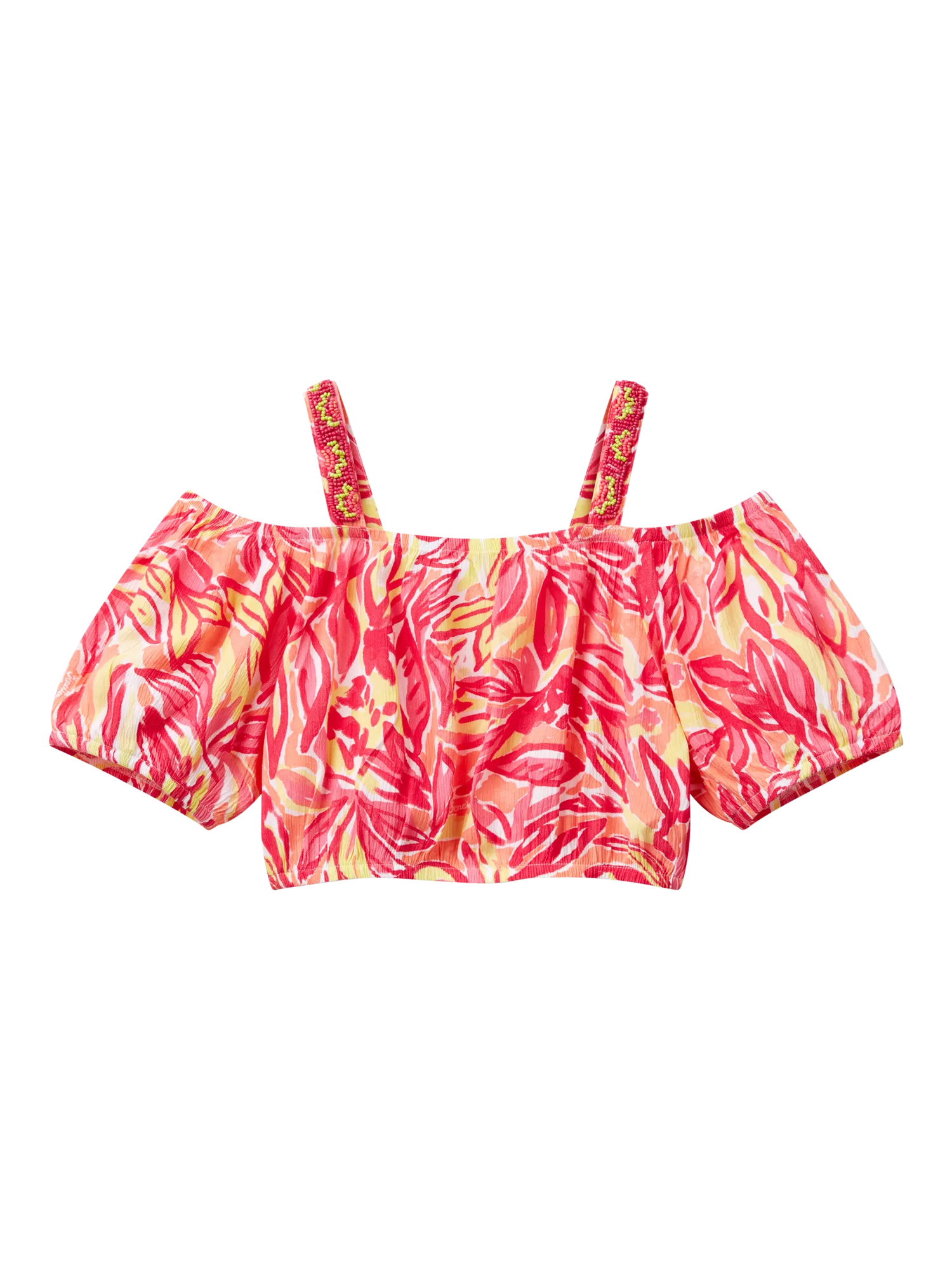 BenettonKids' Beaded Off Shoulder Printed Top, Multicolor
