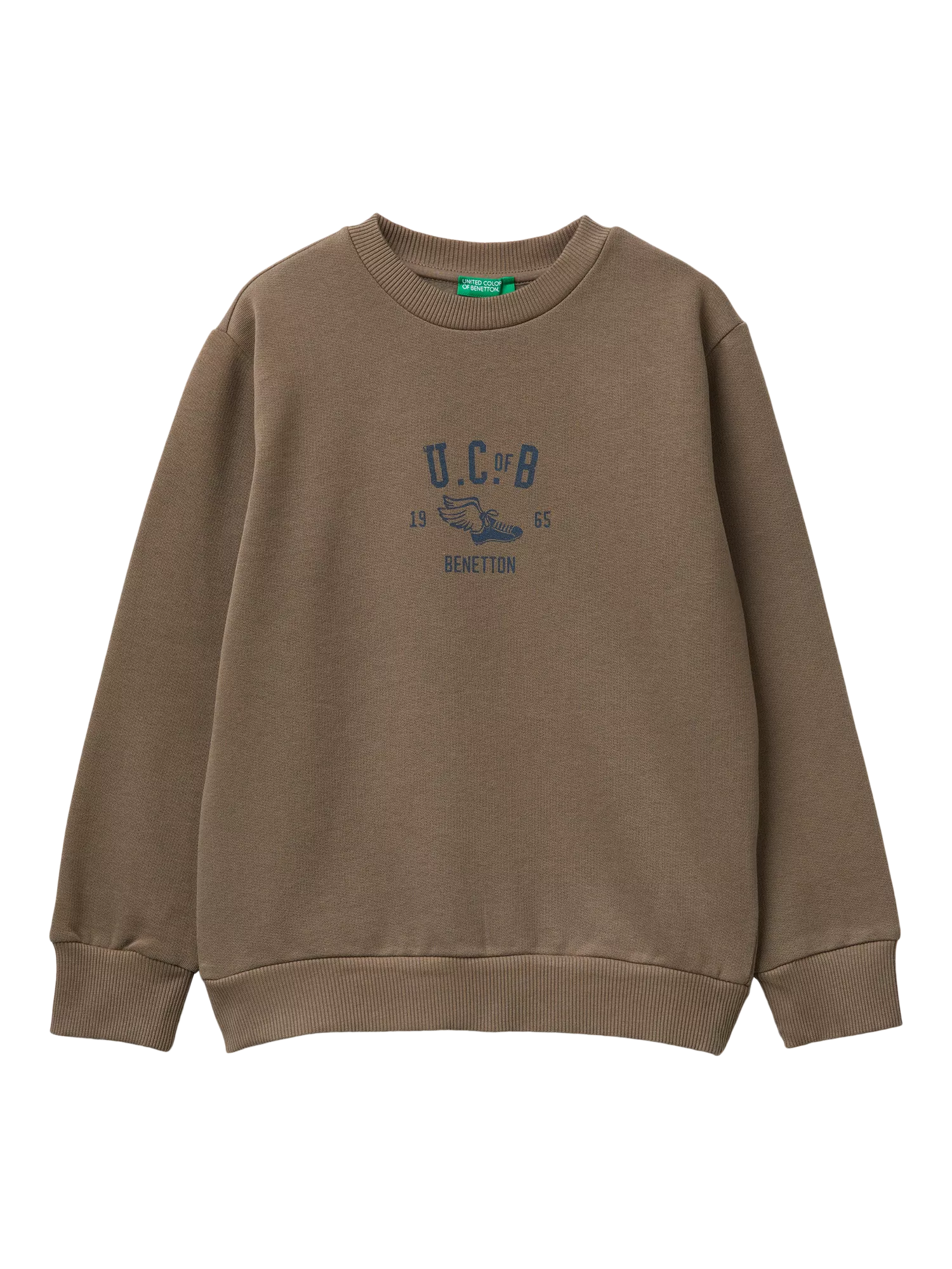 BenettonKids' Brushed Cotton Blend Logo Sweatshirt, Brown