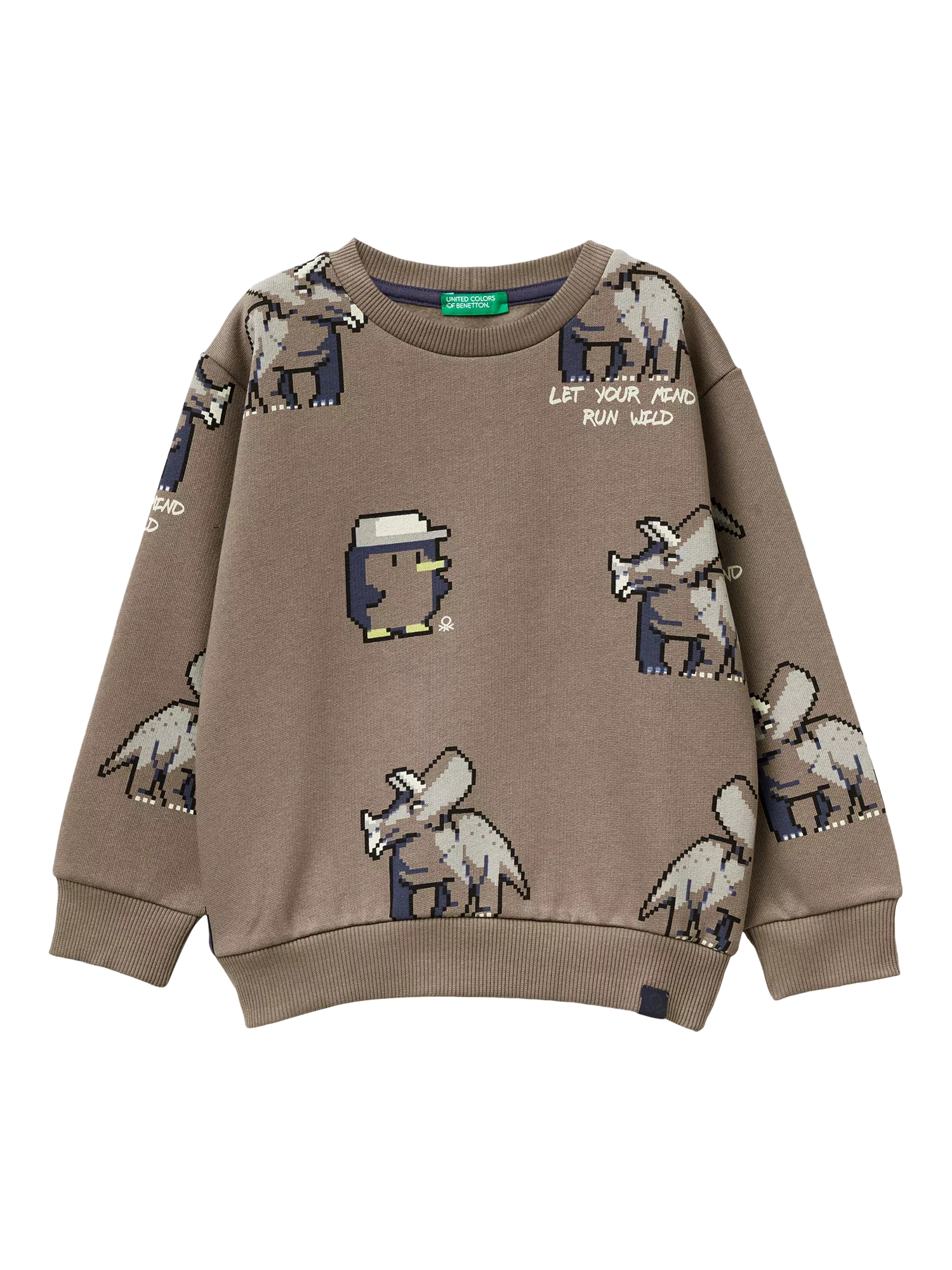 This long sleeve cotton blend sweatshirt features a lively graphic pattern and a comfortable crew neck, making it ideal for daily adventures or relaxed days at home.