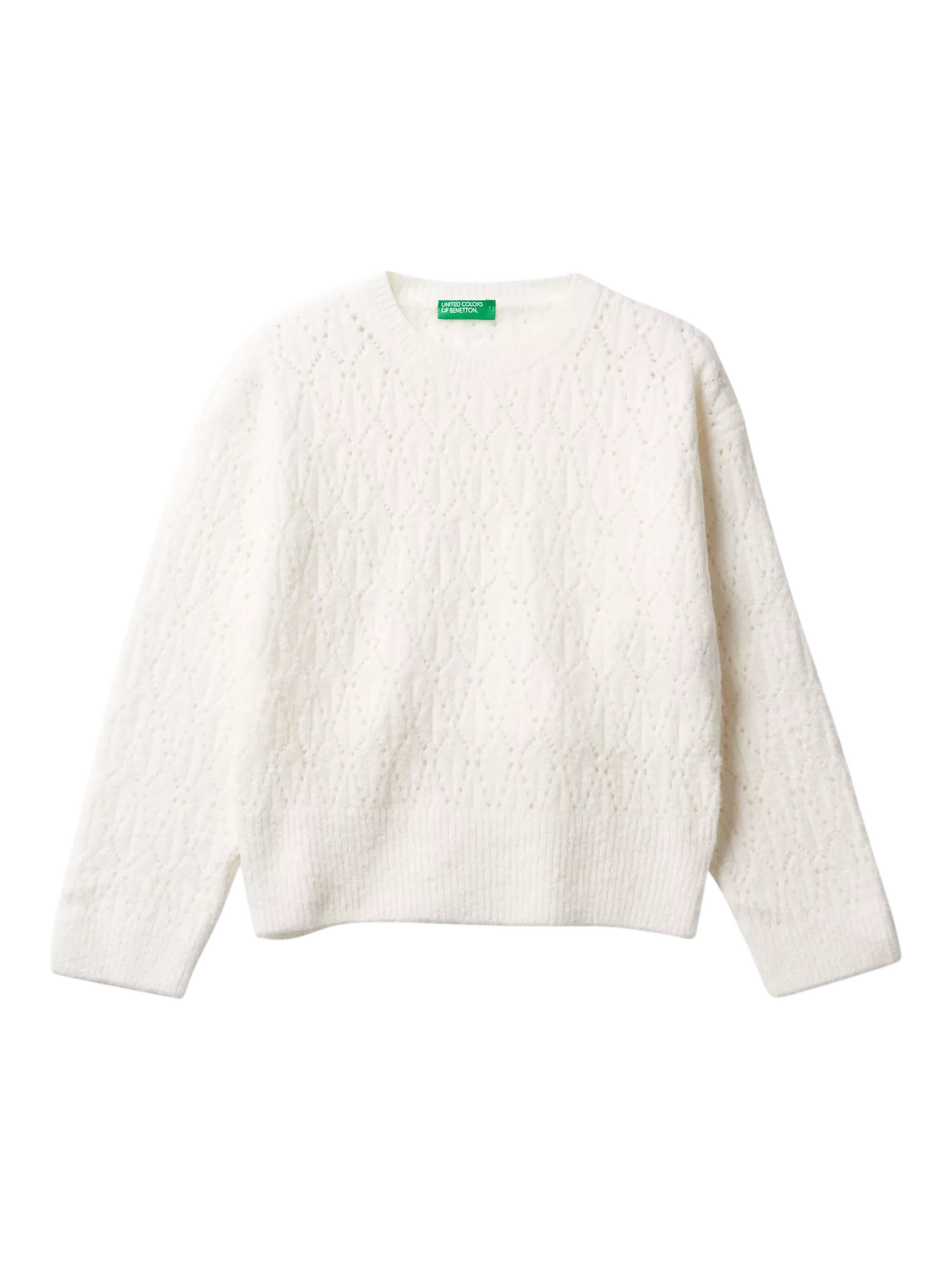 BenettonKids' Cotton Blend Openwork Jumper, White