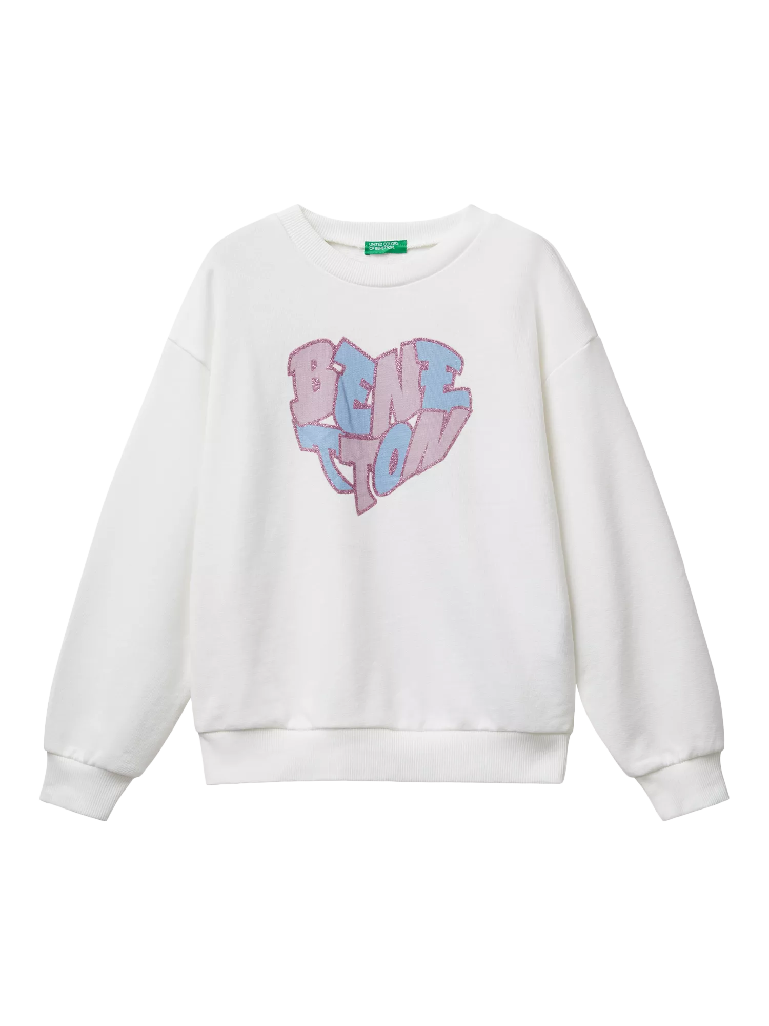 A Crew-neck sweatshirt with ribbed neck and cuffs, featuring a glitter logo on the front. Cut to a slightly baggy fit, perfect for casual and cosy wear. Crafted from 100% cotton.