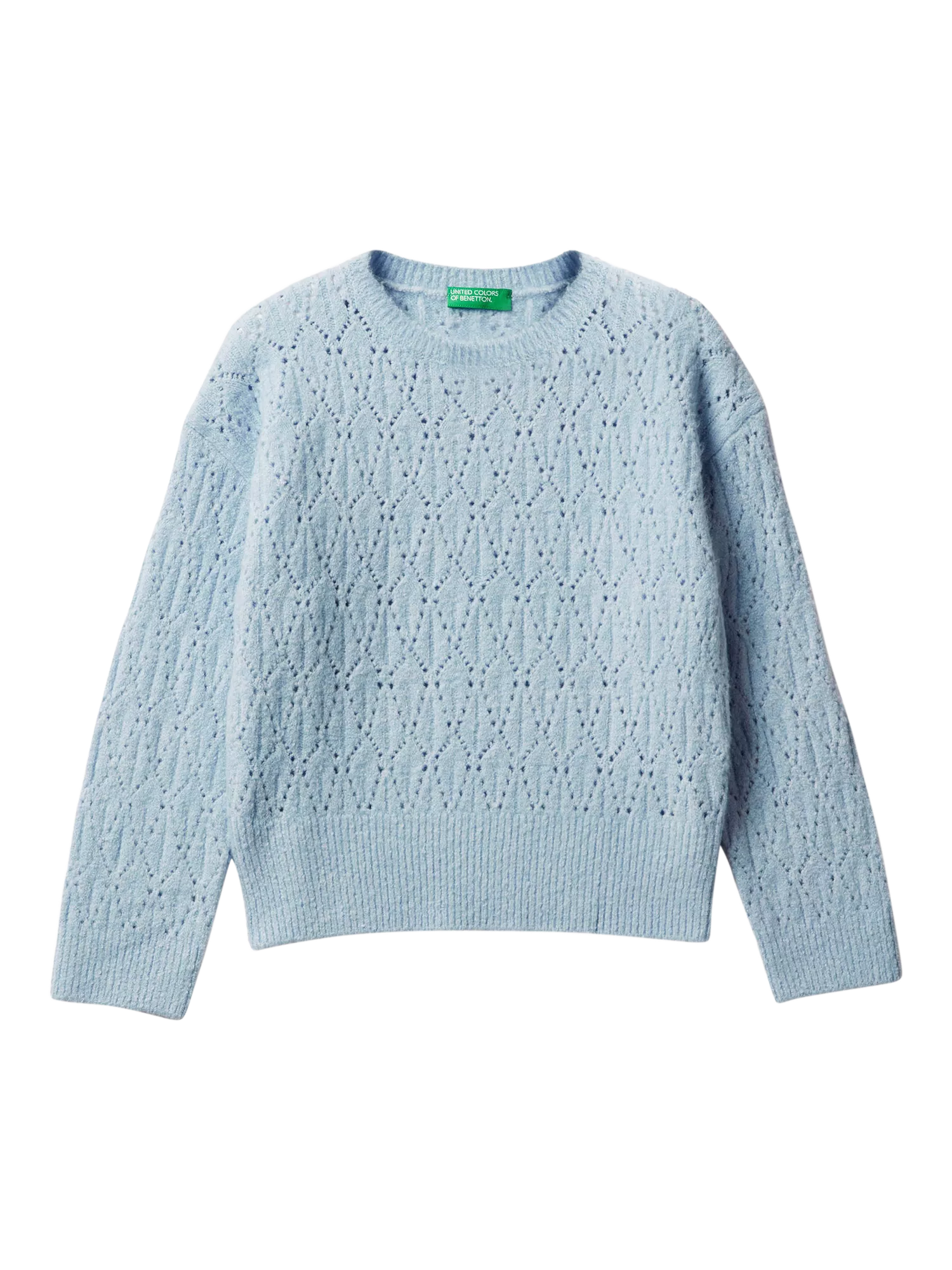 BenettonKids' Knitted Openwork Crew Neck Jumper, Blue