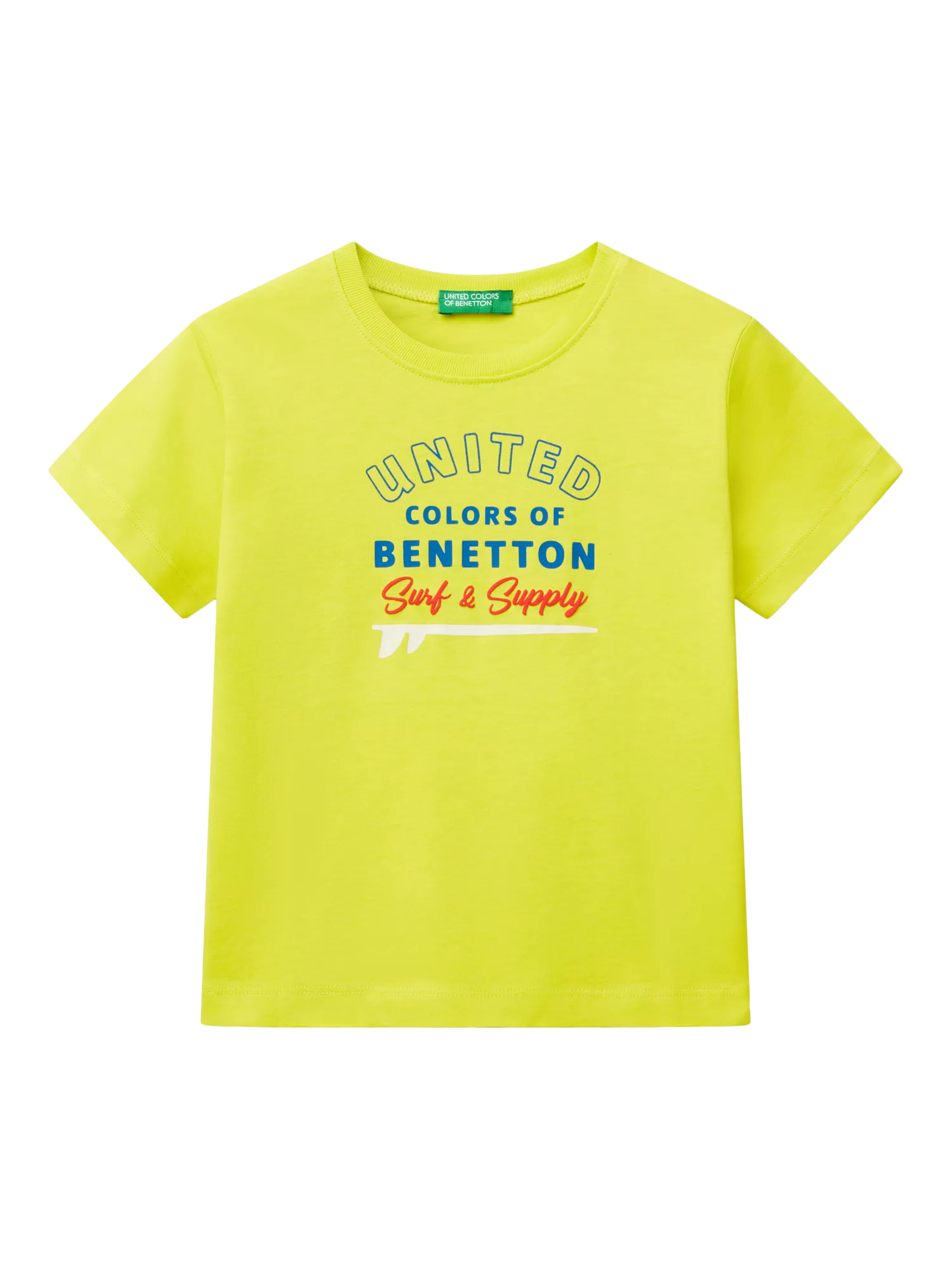 With a bold multi-coloured logo print, this short-sleeved t-shirt by Benetton is made from pure cotton for soft, breathable wear.