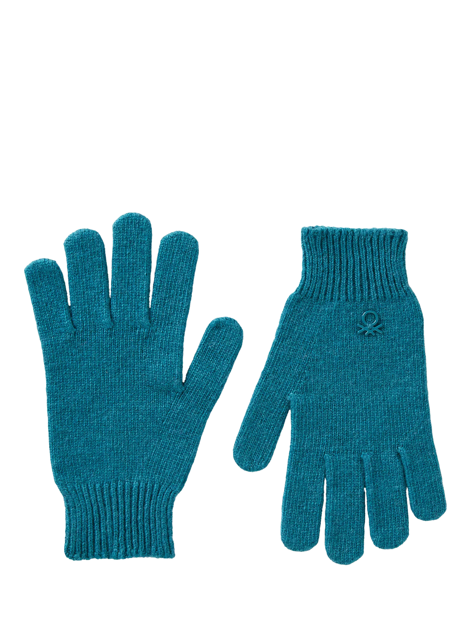BenettonKids' Ribbed Cuff Gloves, Blue, One Size