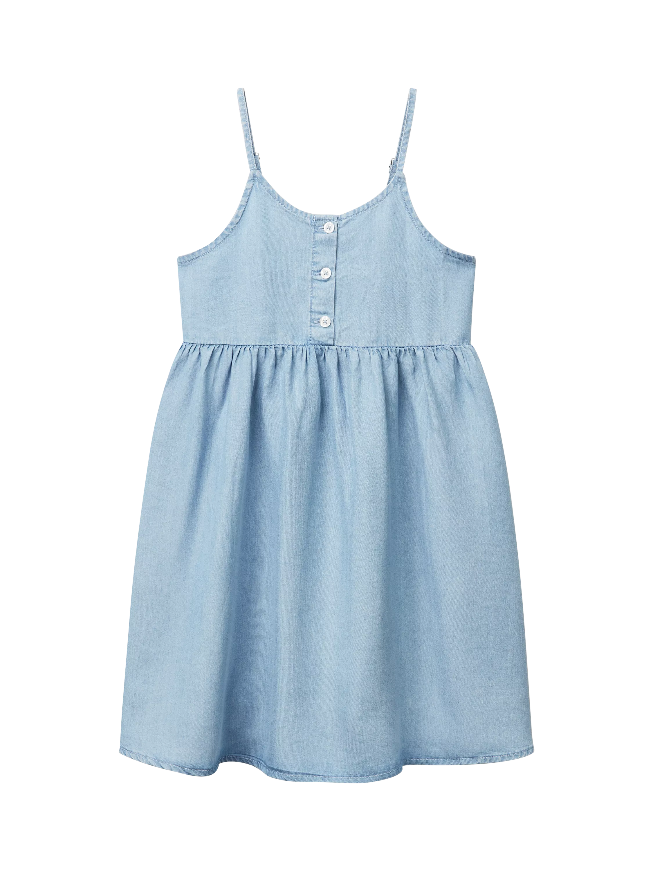 BenettonKids' Shoulder Strap Flared Dress, Light Blue Denim
