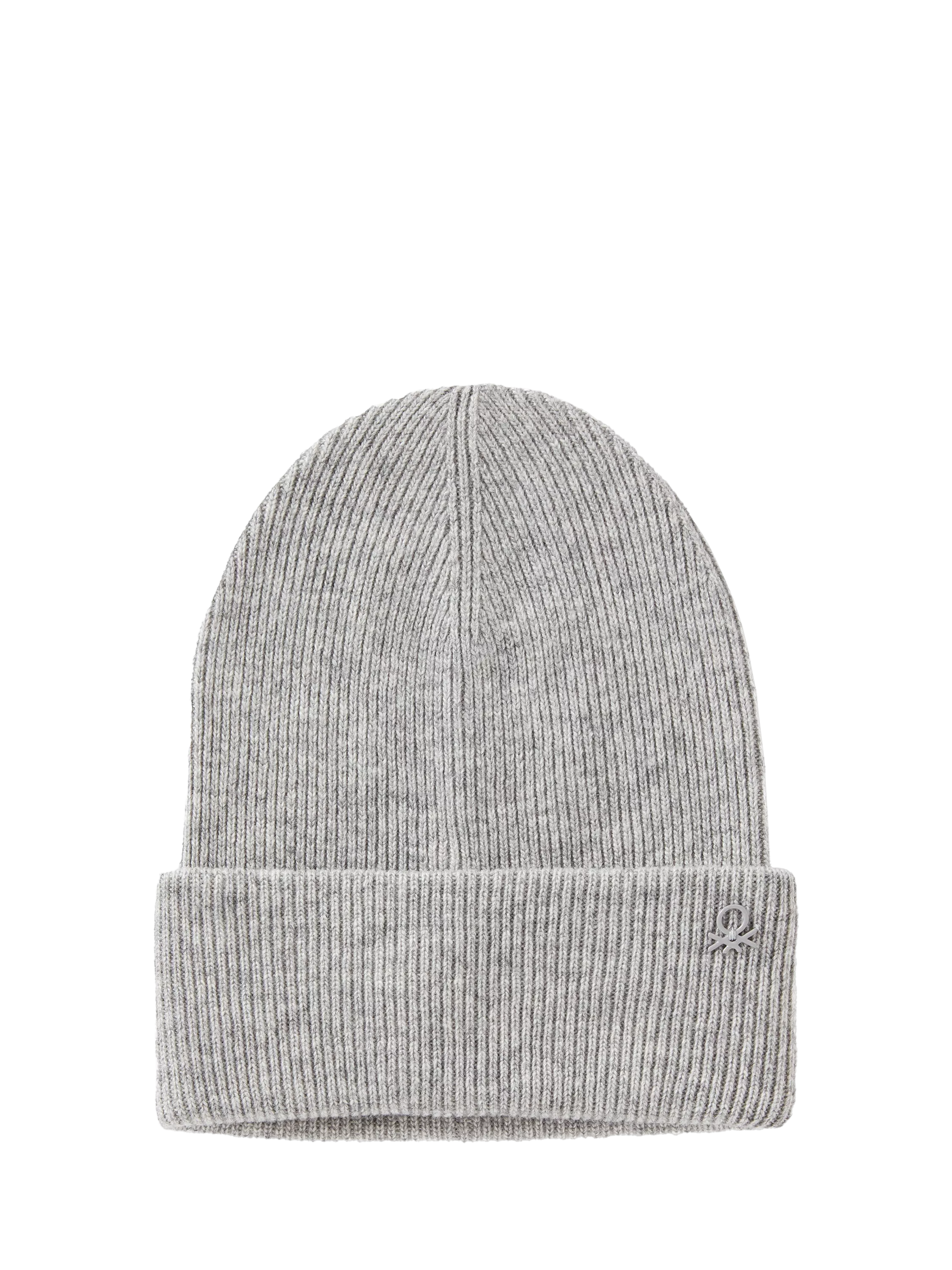 BenettonKids' Wool Blend Ribbed Knit Beanie Hat, Grey, One Size