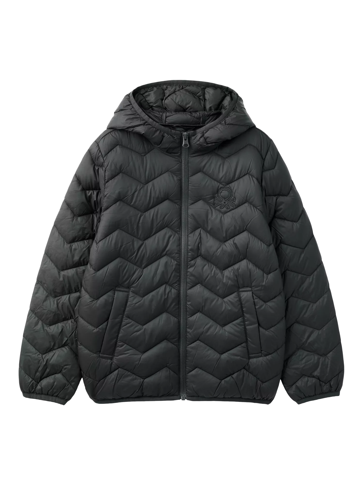 The perfect piece to wrap up in on chilly days, this padded jacket from Benetton features zigzag quilting, a hood, zip front and pockets.