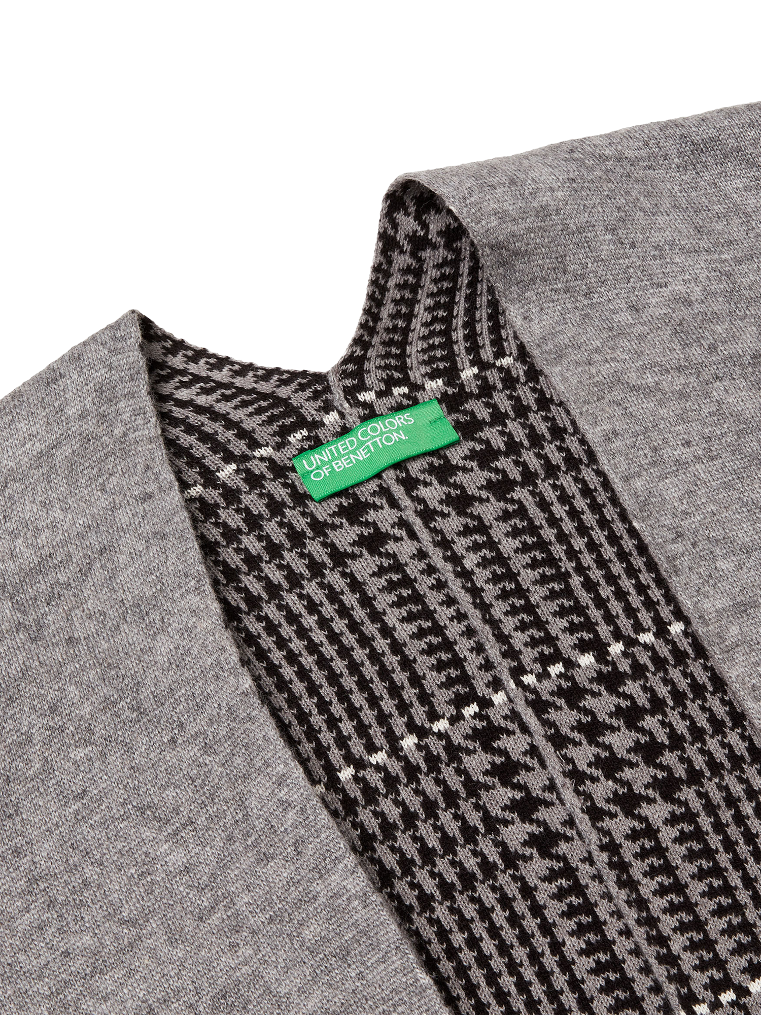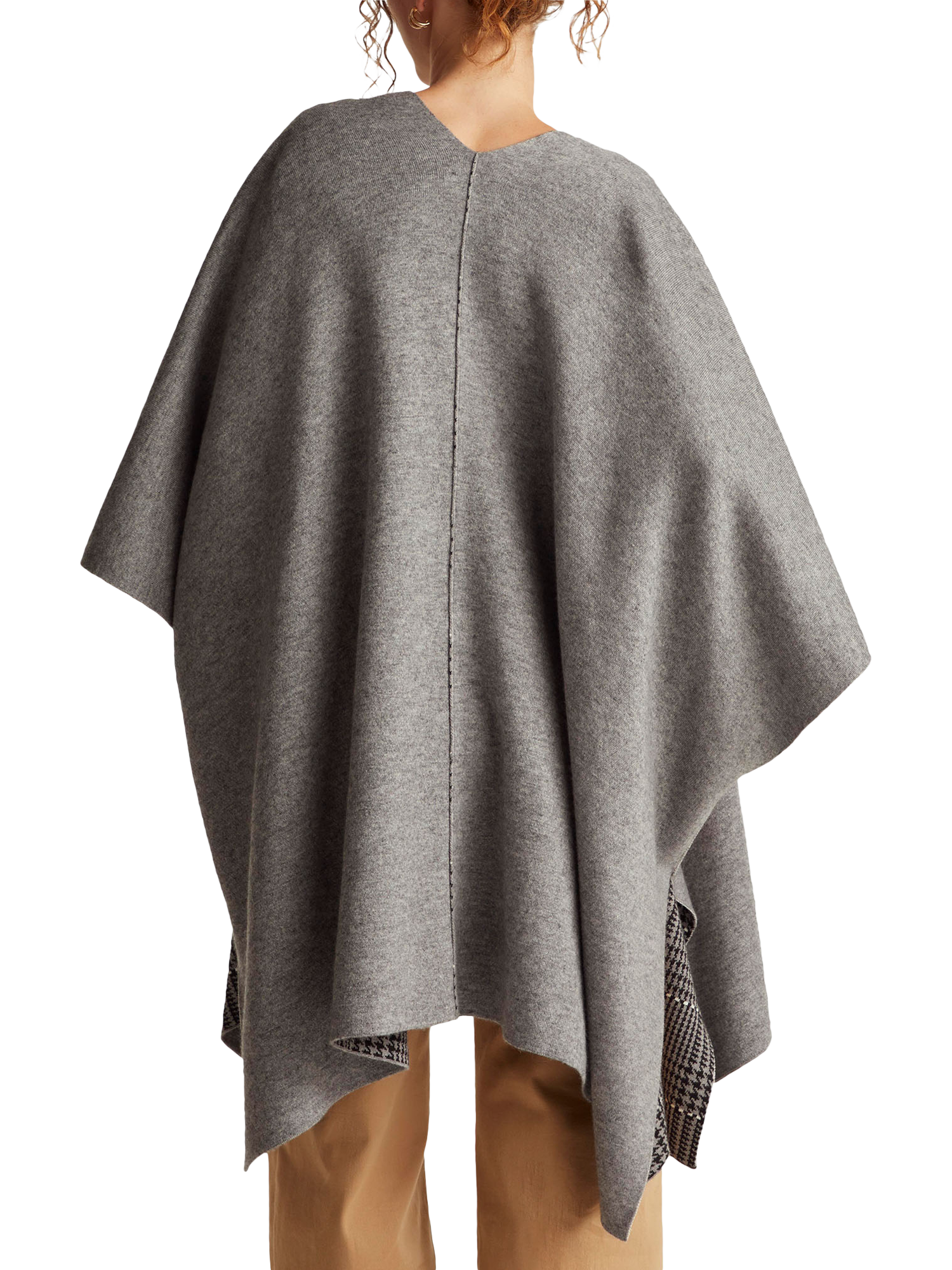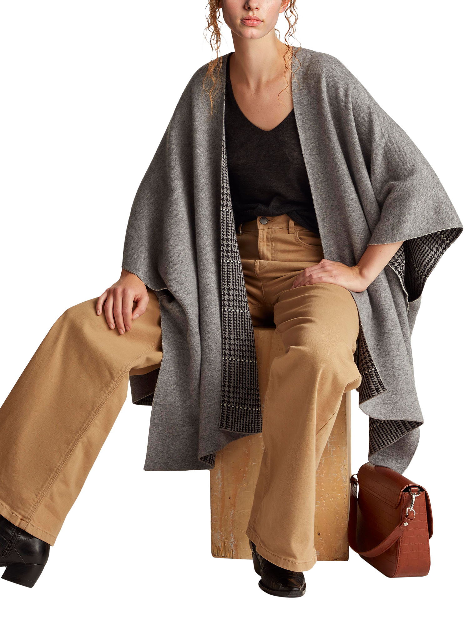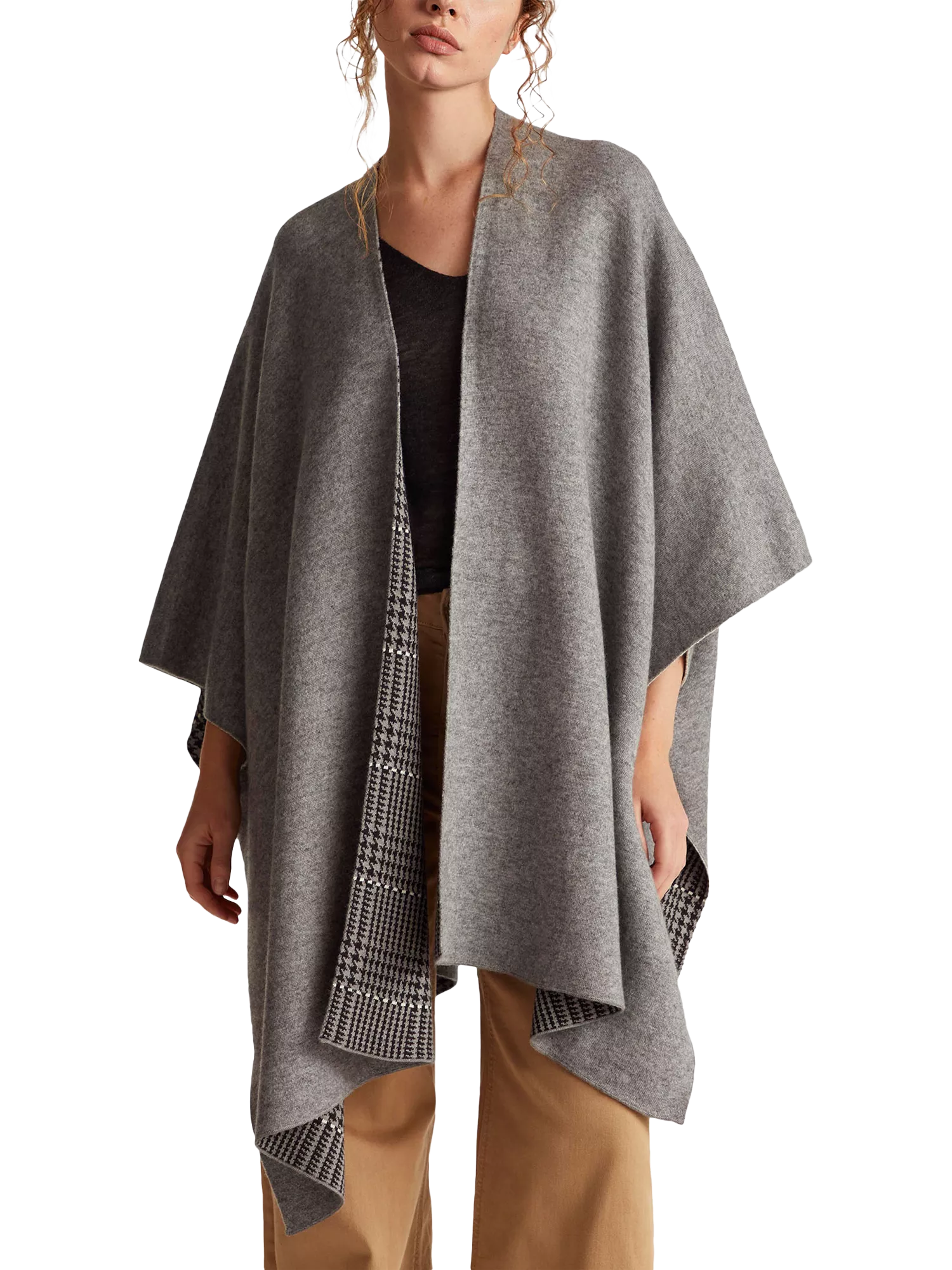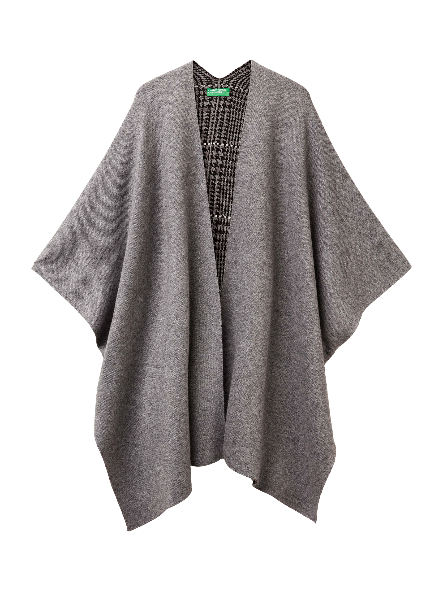 Elegant reversible knitted cape perfect for a casual chic look. Features a sleek finish with a Prince of Wales check, ideal for versatile styling opportunities.