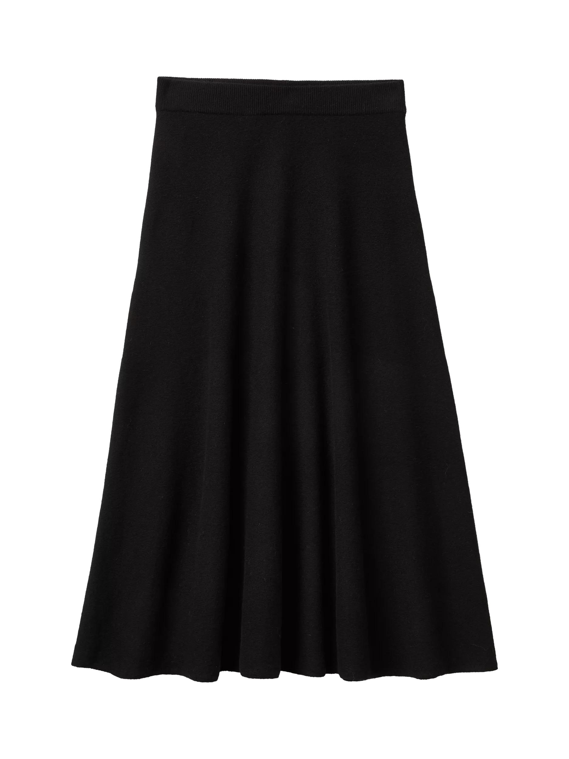 An elegant ankle-length skirt featuring a flared line and horizontal jersey knitting with an internal elastic tape for comfort.