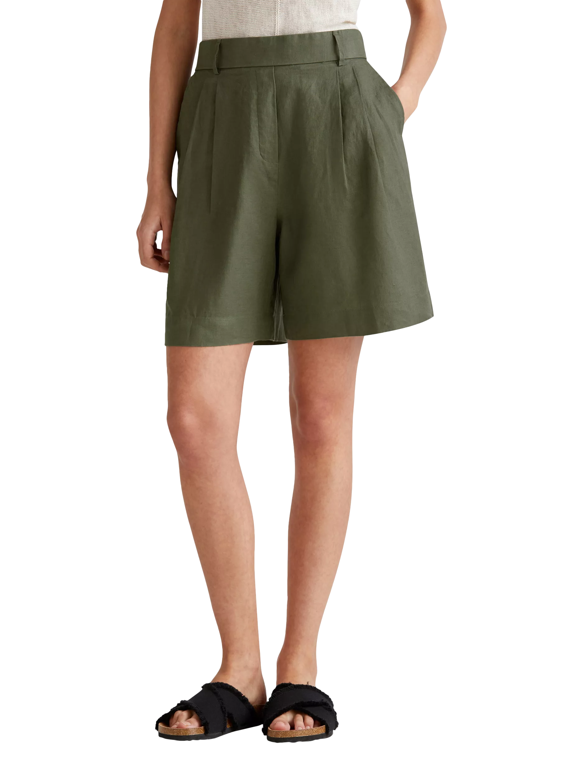 BenettonLinen Shorts, Mid Green