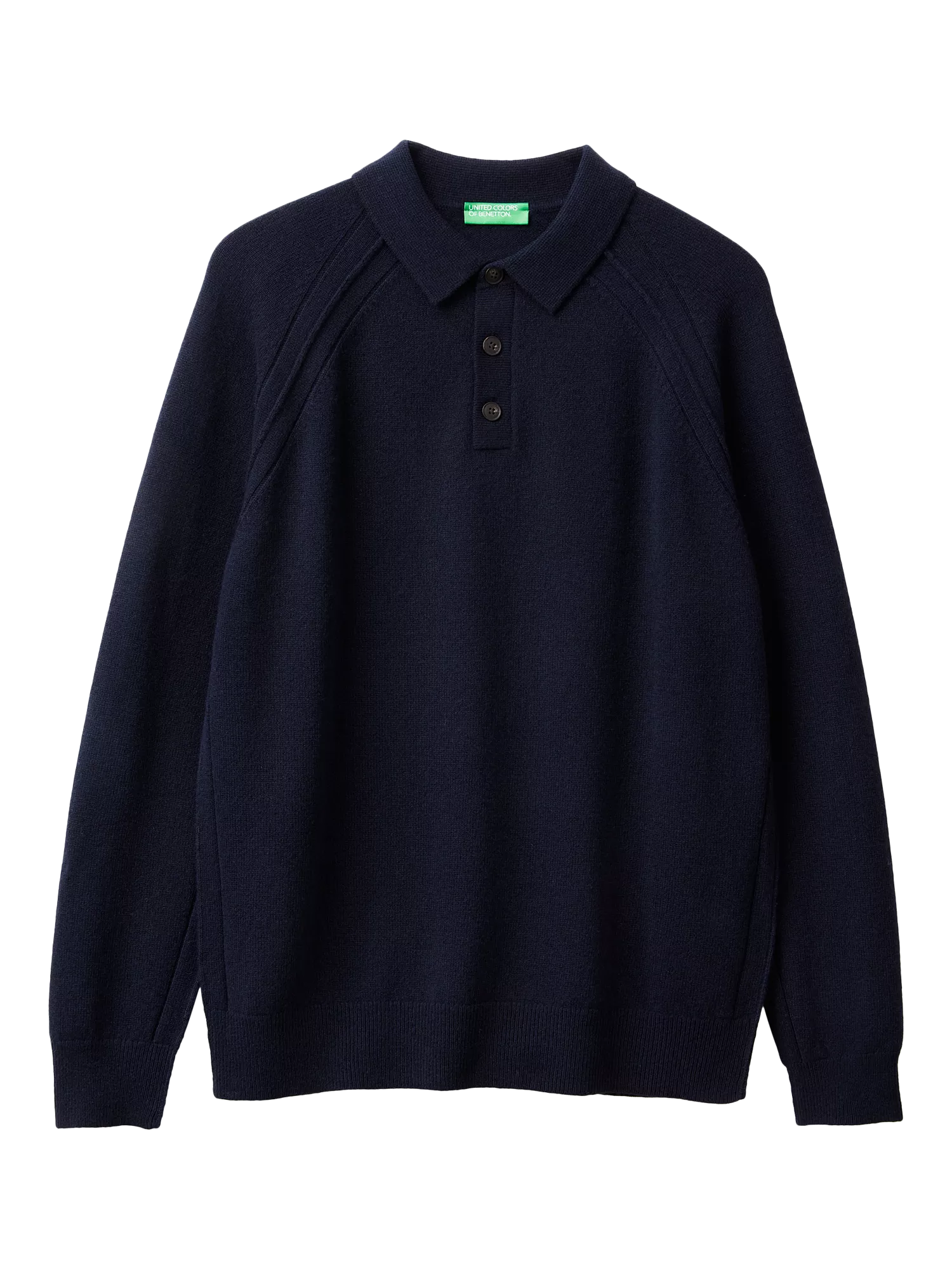 Stay comfortable and confident in this long-sleeved polo shirt, a finely knitted design made from warming wool. It is also detailed with a soft collar and raglan sleeves that provide a greater sense of ease.