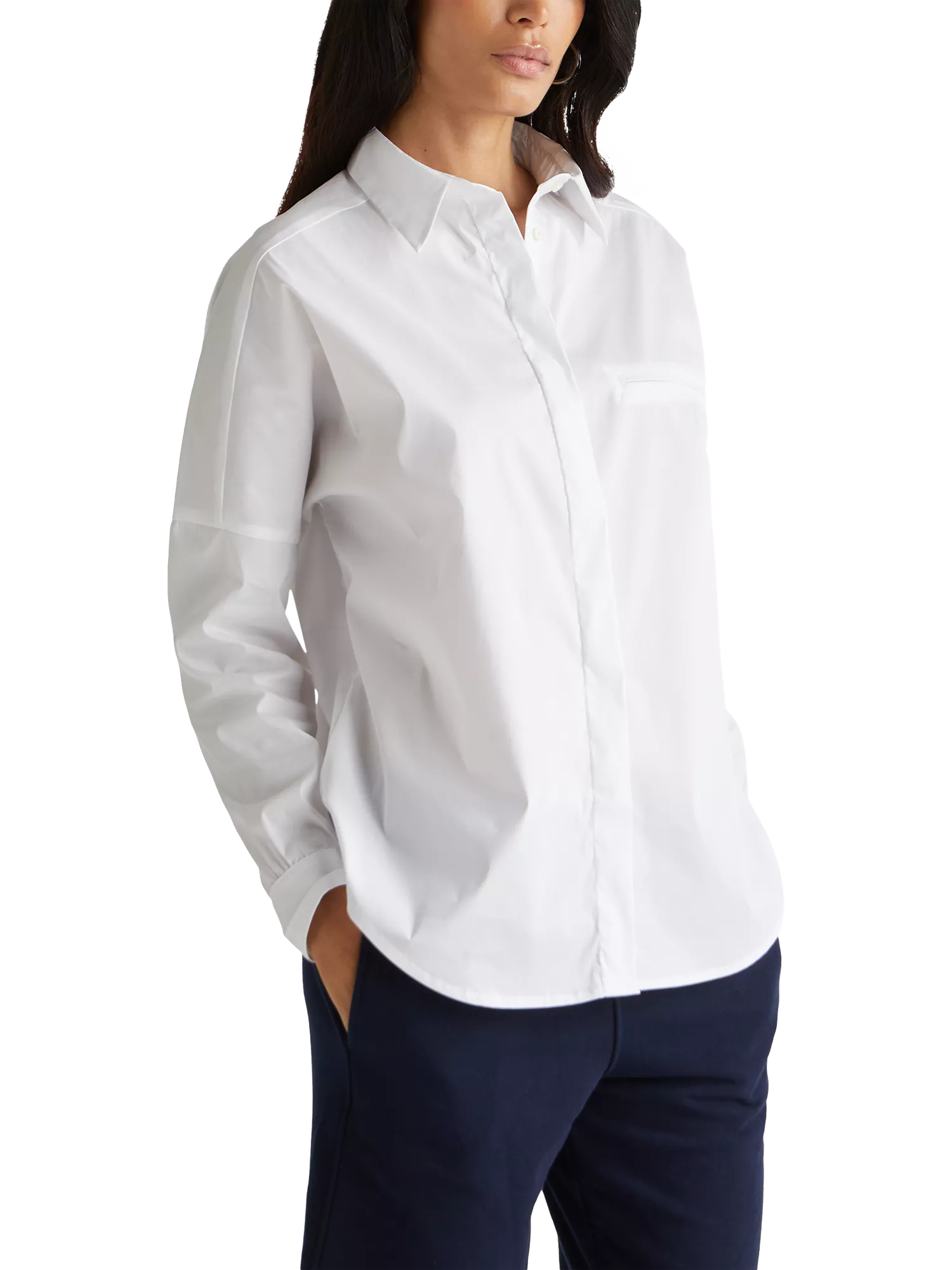 A loose-fitting shirt from Benetton with a stretch-friendly cotton-blend construction. Featuring a classic collar and long sleeves, this plain design also offers an abundance of styling opportunities.