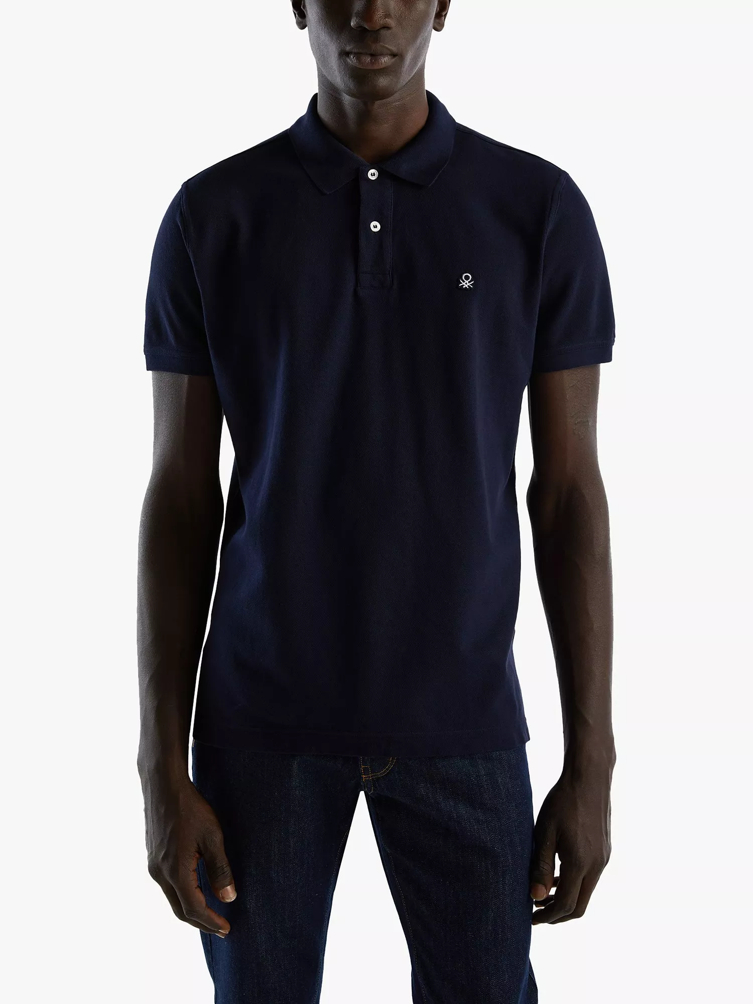 BenettonShort Sleeve Polo Shirt, Navy Blue, L