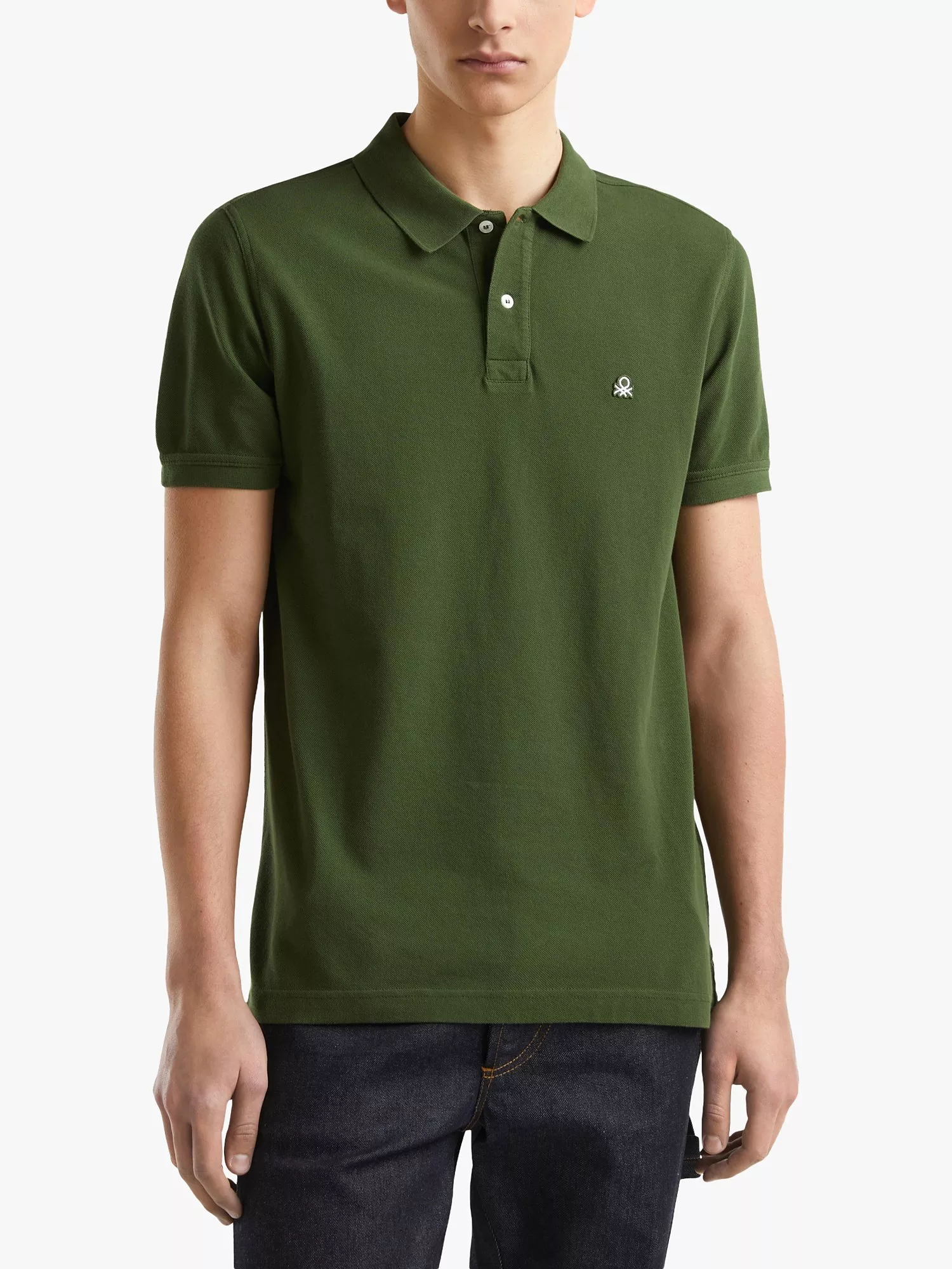 BenettonShort Sleeve Polo Shirt, Olive Green