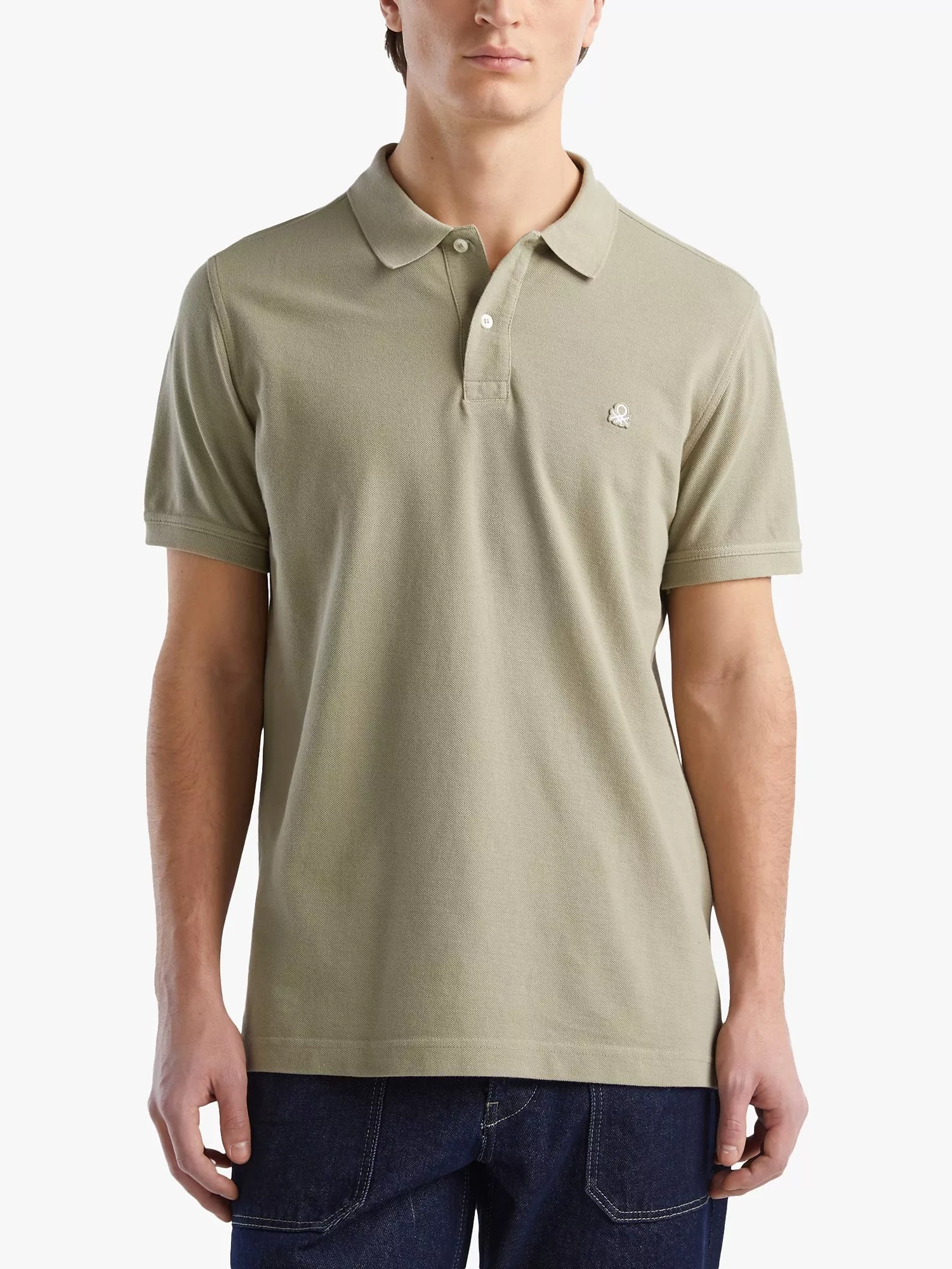 BenettonShort Sleeve Polo Shirt, Pale Khaki Green, L