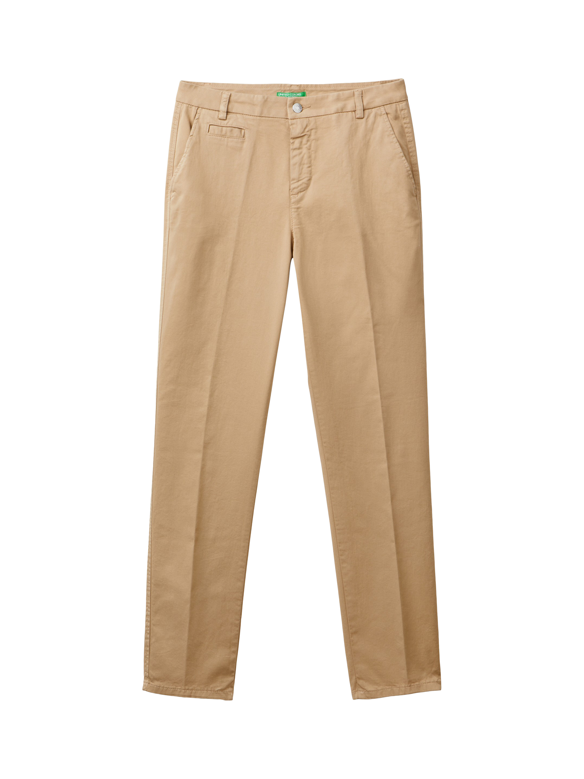 Nailing the smart-casual brief with style, this pair of chinos from Benetton sit naturally on the hips and come in a slim-fit cut. In a comfortable cotton blend, they can be worn with patterns and prints thanks to their plain design.