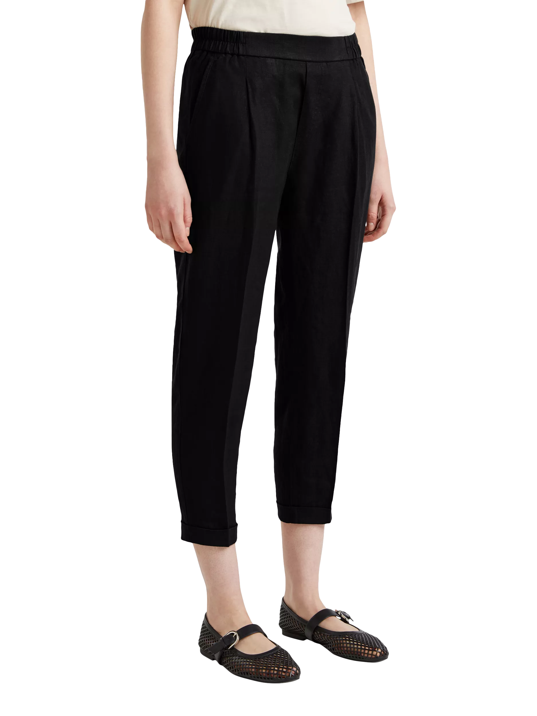 BenettonStraight Cropped Pure Linen Trousers