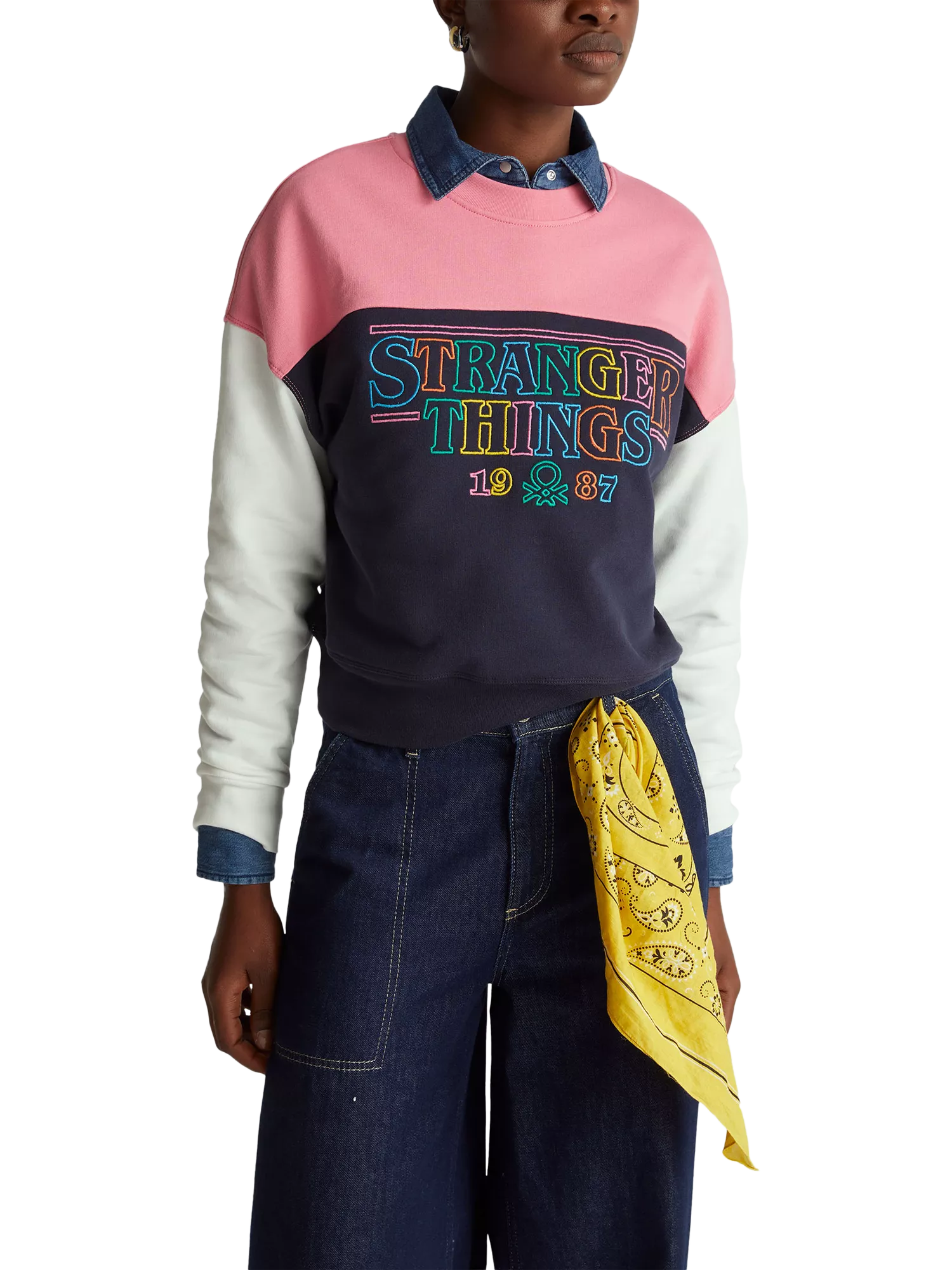 BenettonStranger Things Colour Block Sweatshirt, Blue/Multi