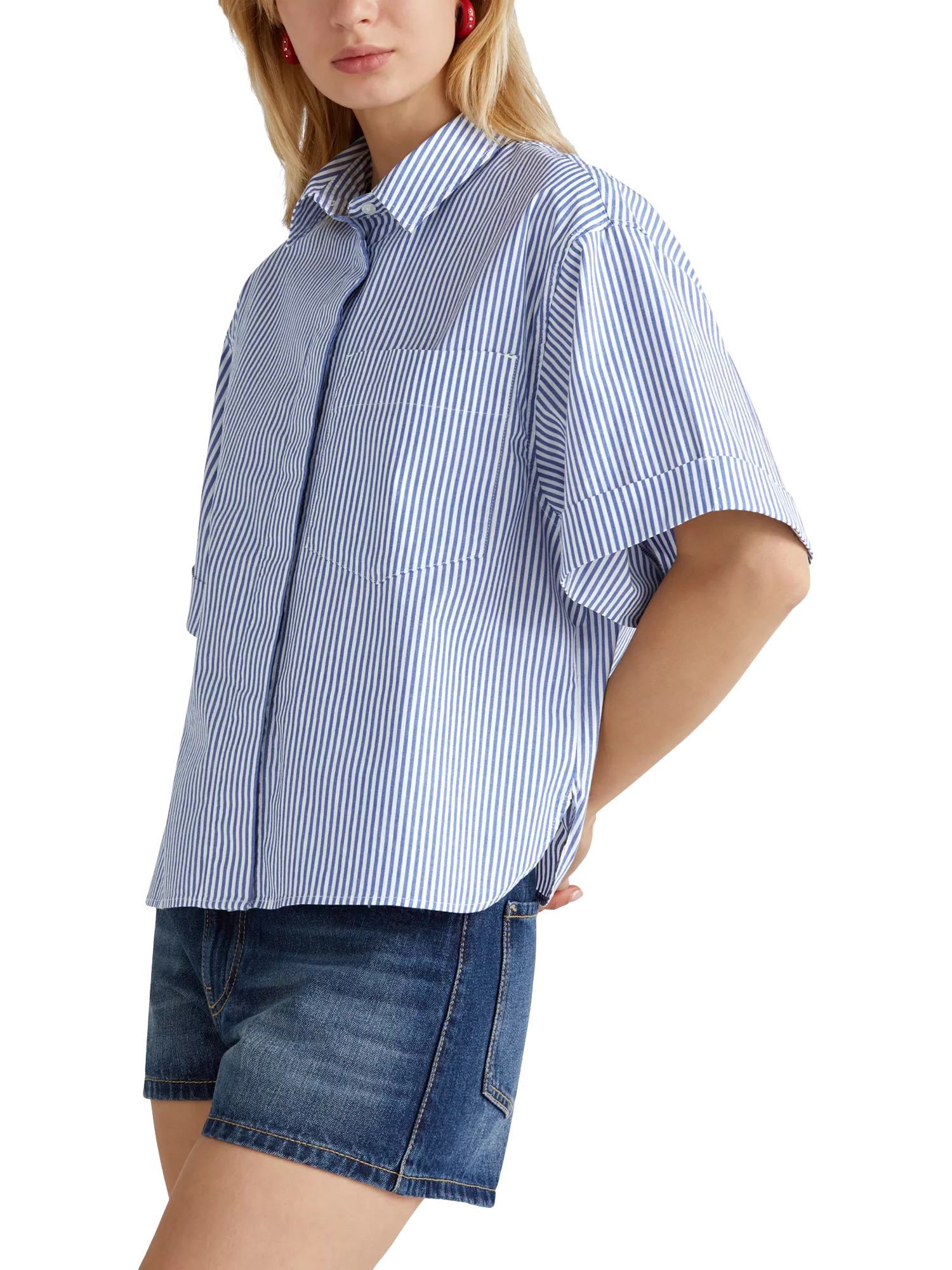 Short Sleeve Shirt With Concealed Buttons In Striped Yarn Dyed Cotton. Boxy Fit, Pointed Breast Pocket. Back Yoke With Double Stitching.