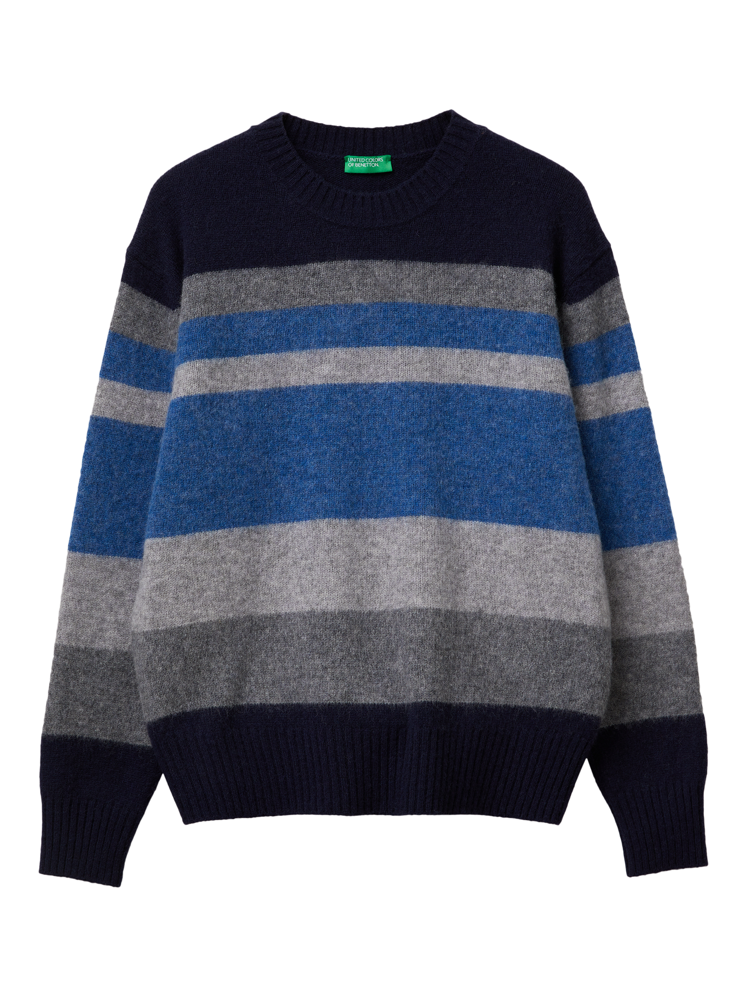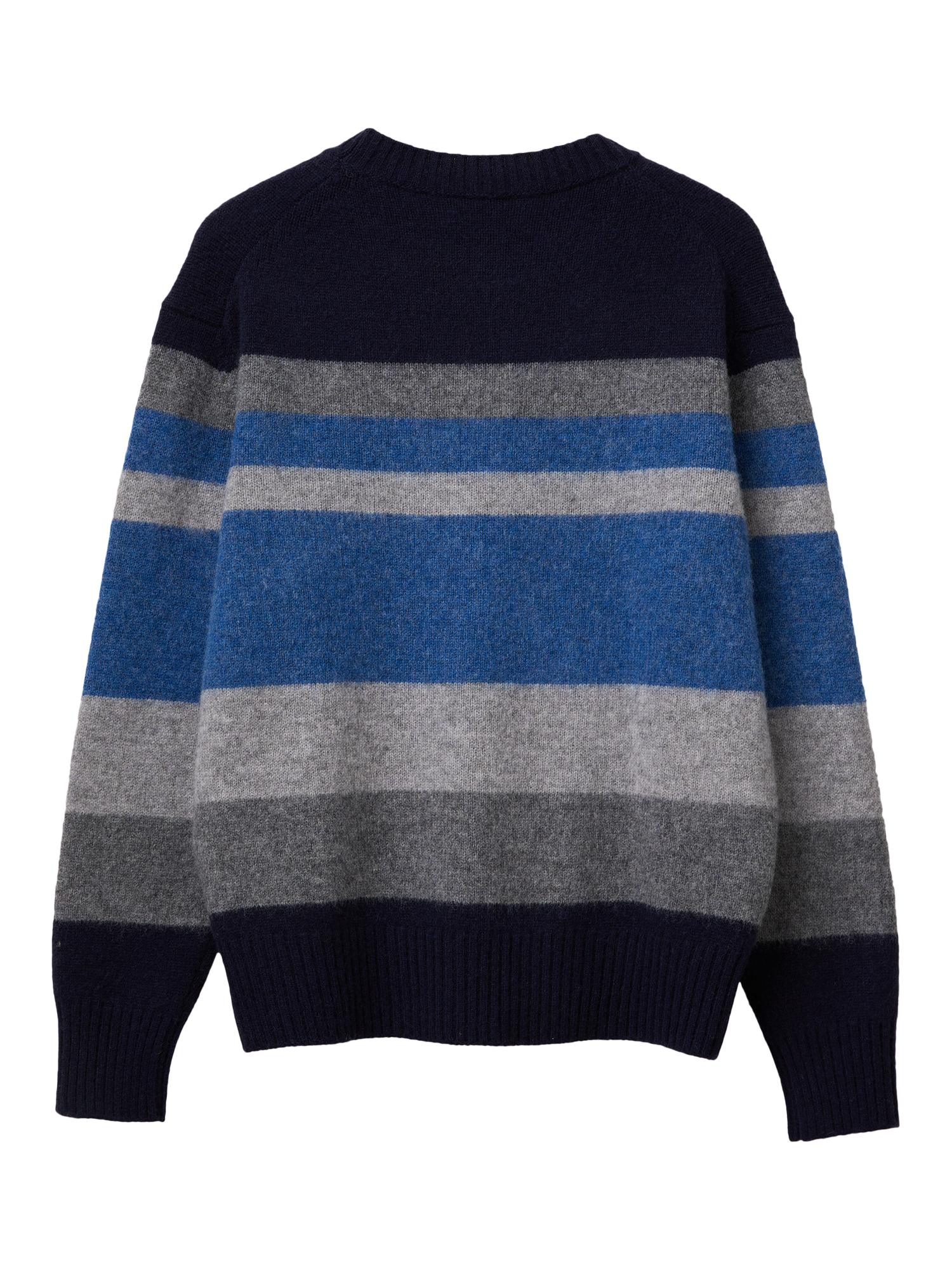 This stylish and comfortable brushed crewneck sweater offers a relaxed fit with striped plain knit and ribbed edges, perfect for casual outings in cold weather.