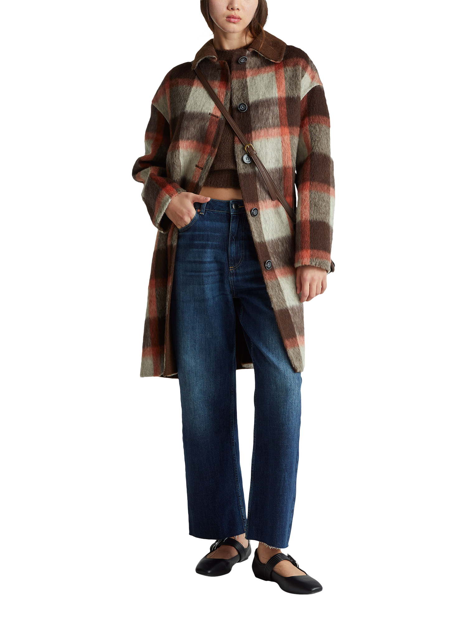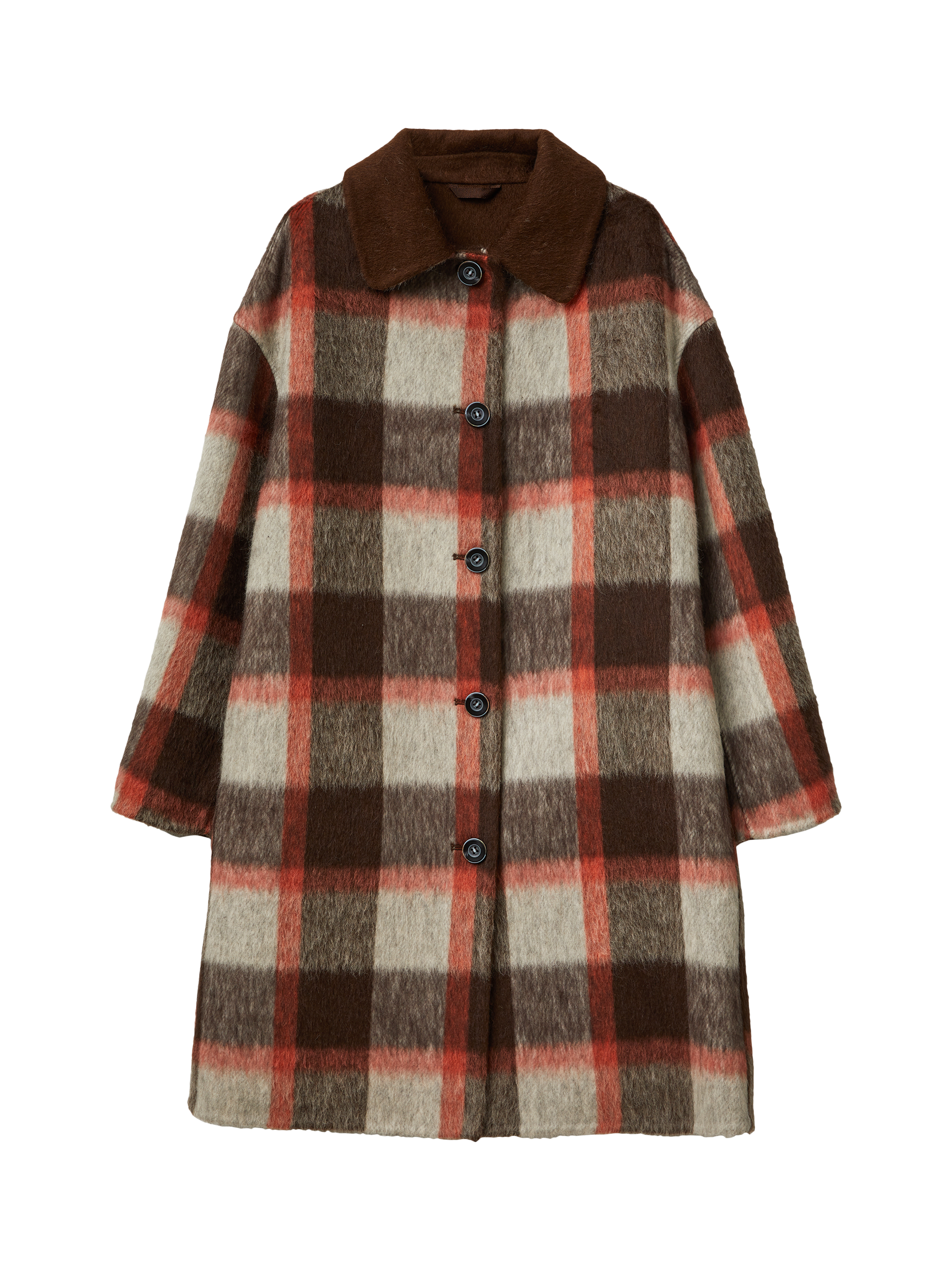 This knee-length overcoat features a classic check pattern and a comfortable wool blend. Its regular fit and button fastening make it practical for winter days, while the collar and long sleeves add everyday versatility to your wardrobe.