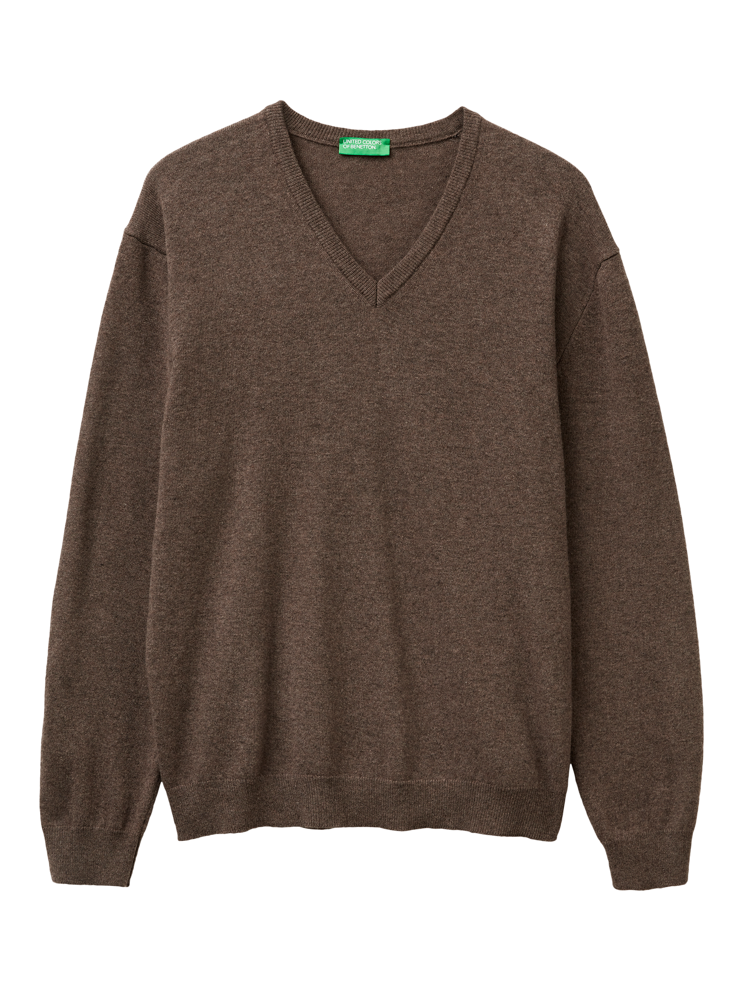 Benetton's V-neck jumper is a modern wardrobe staple that offers both warmth and an abundance of styling potential. It is also made from pure wool, making it lightweight and pleasant to the touch.
