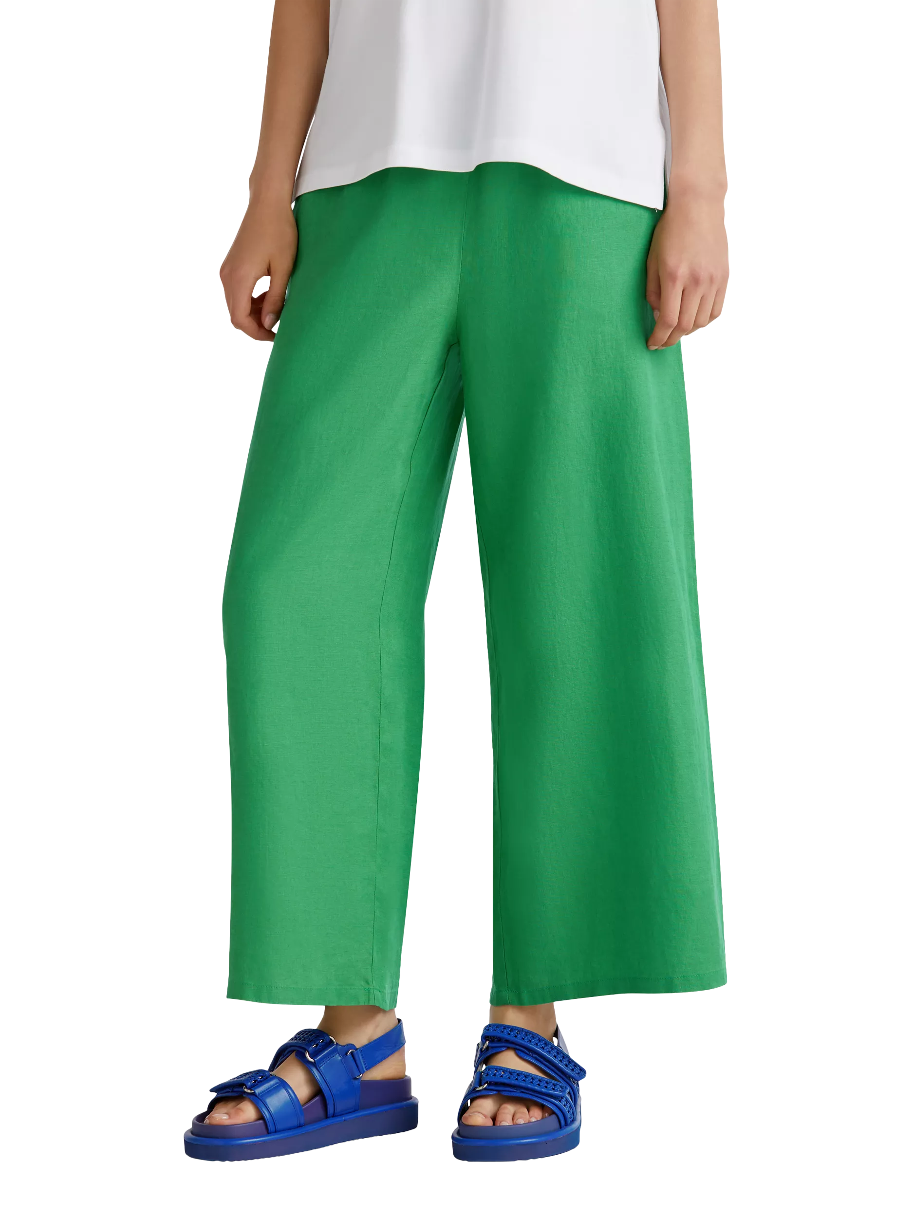 Comfortable and stylish linen trousers with an elasticated waistband, perfect for casual wear in warm weather.