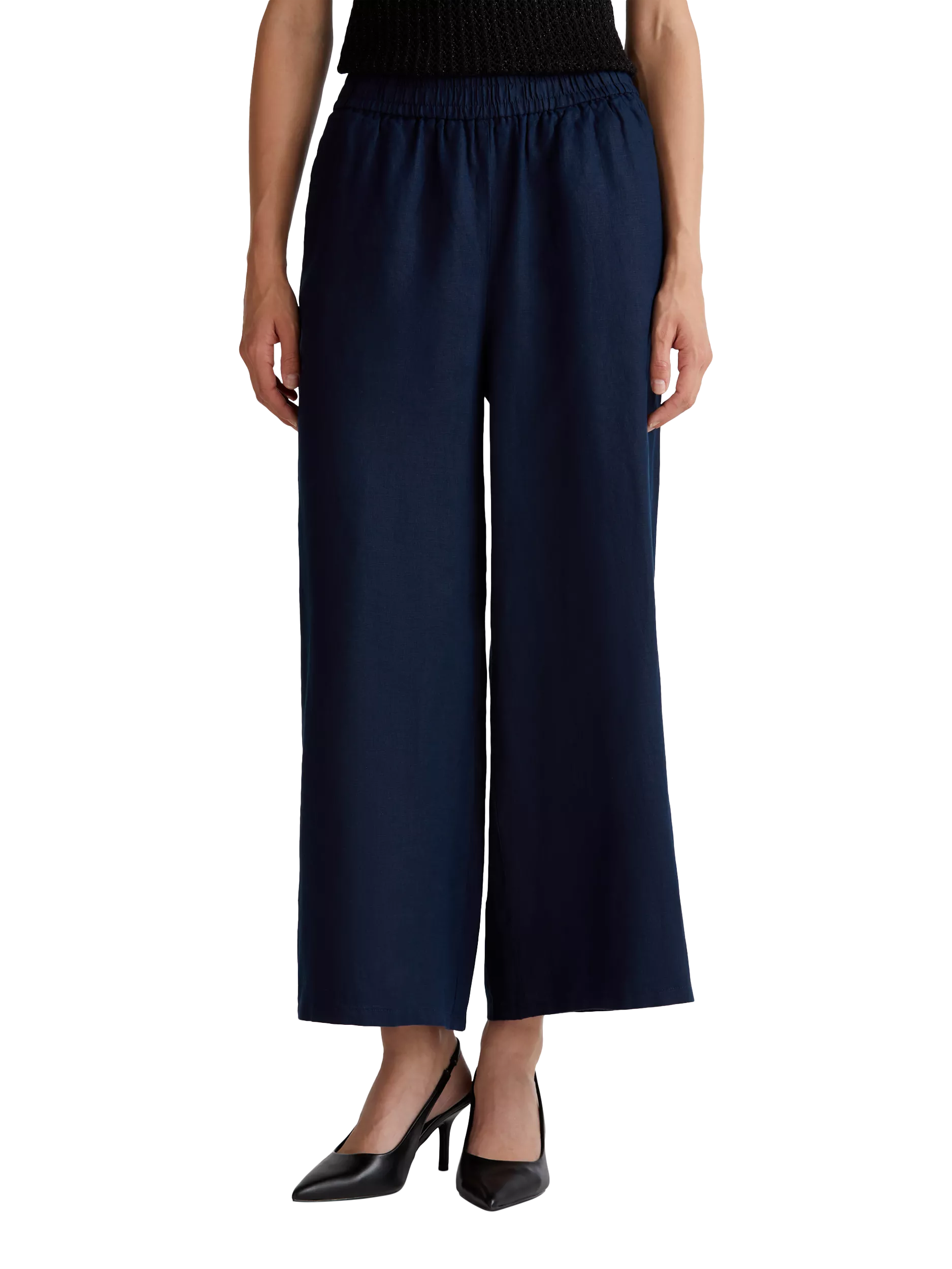 Experience the comfort of these Linen Trousers designed with an elastic waist for a relaxed fit, perfect for both casual wear and elegant occasions.