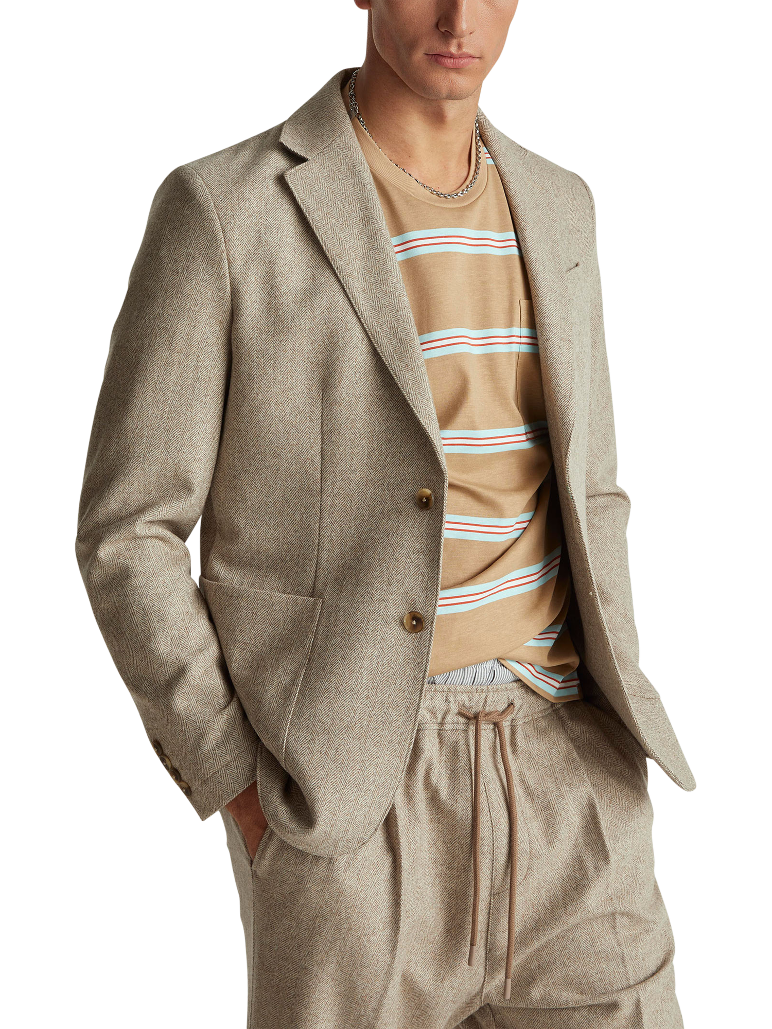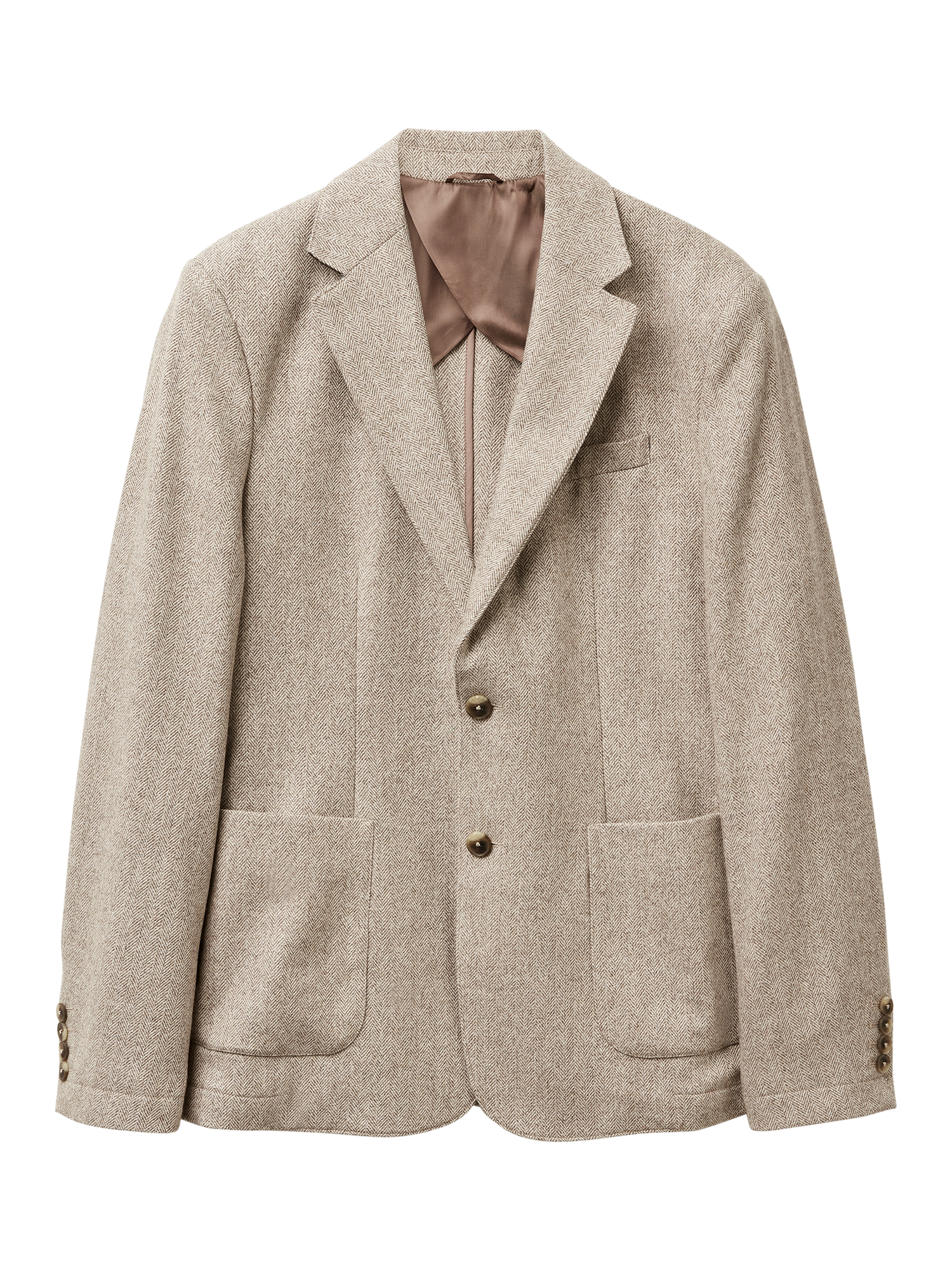 Crafted from a premium wool-blend flannel, this blazer features a timeless herringbone pattern. Designed with a regular fit and an internal half-lining for effortless layering, it’s finished with classic front patch pockets for a touch of relaxed sophistication.
