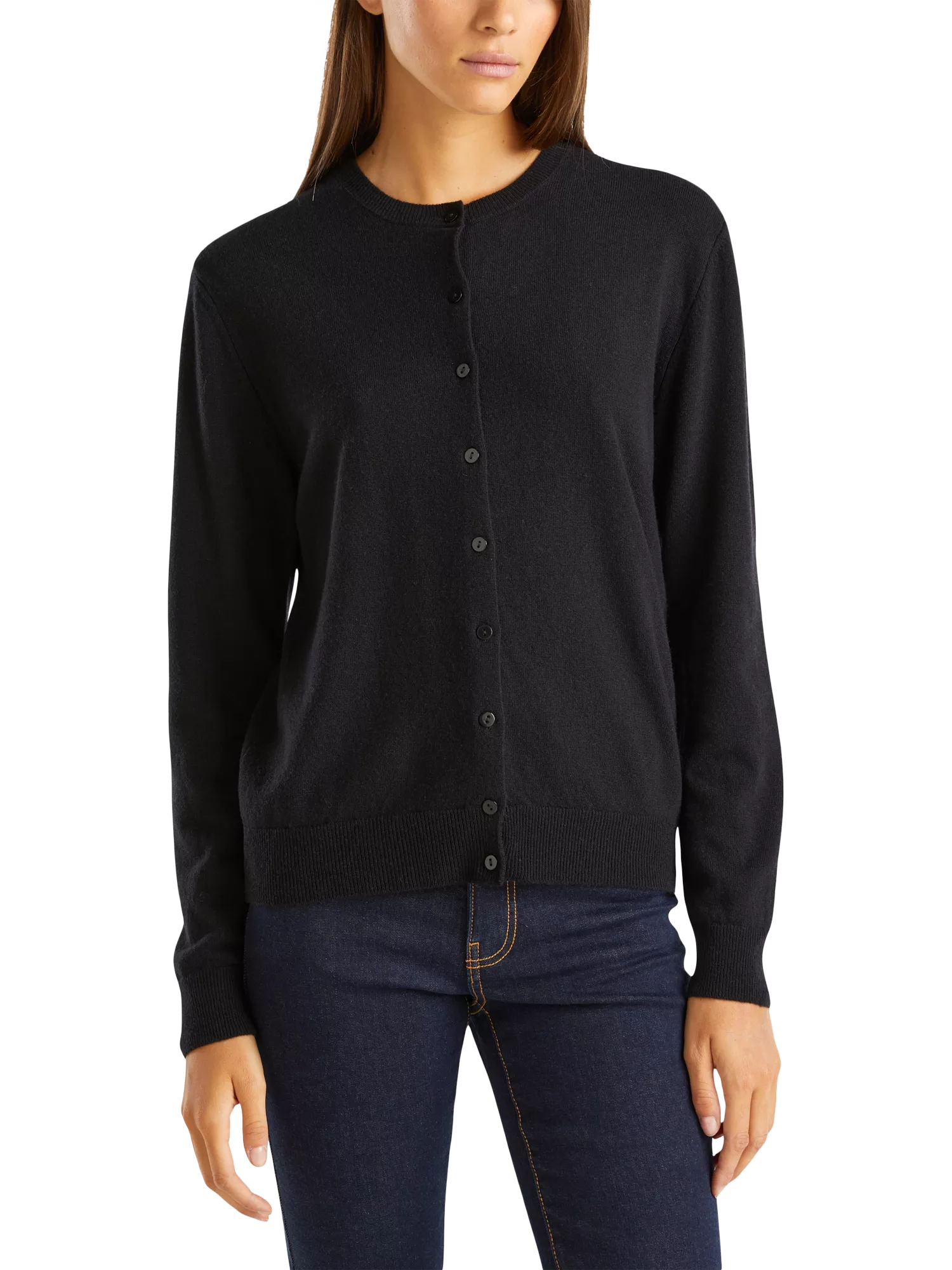 A fine knit crew neck cardigan in 100% virgin wool. With a smart button fastening and plain design, it fits effortlessly into your daily routine, adding function and style to your wardrobe.