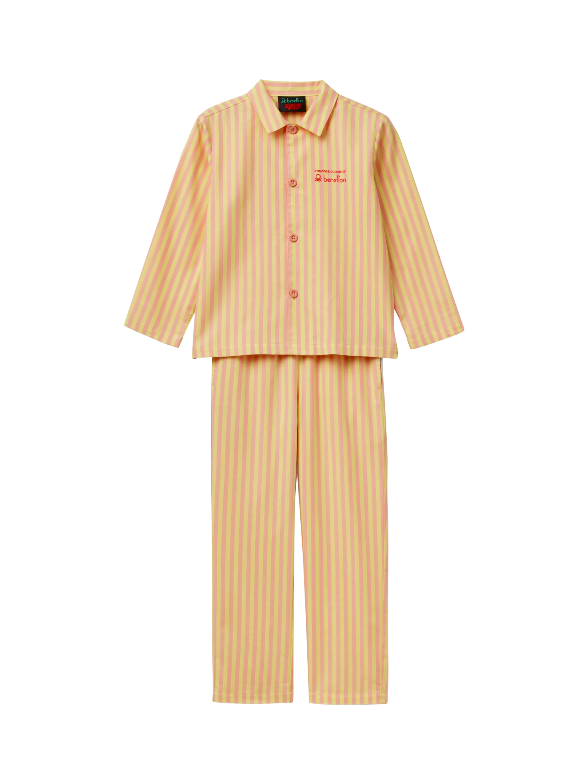 BenettonX Stranger Things Kids' Striped Pyjama Set, Dark Yellow