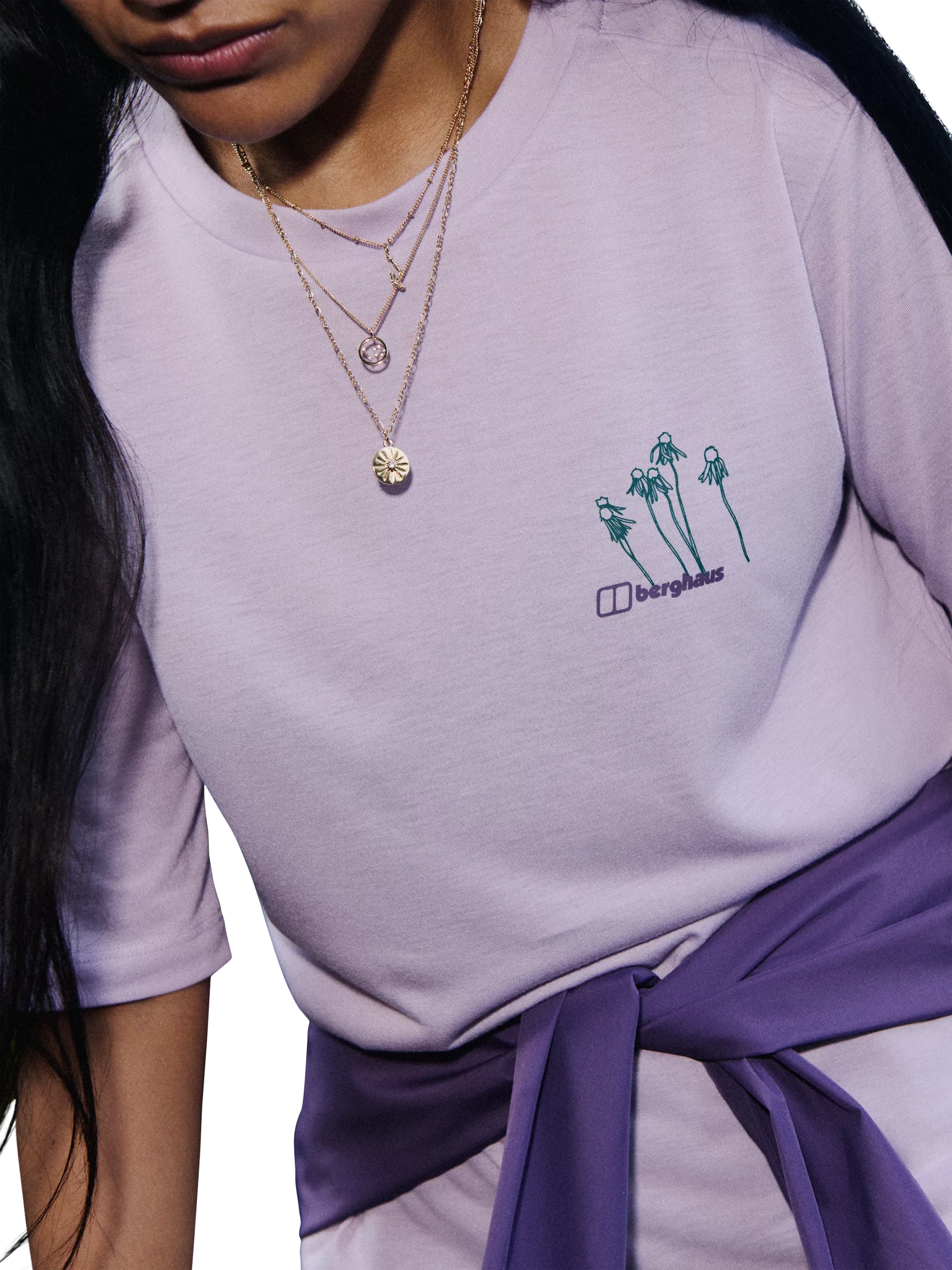 The anti-microbial fabric is comfortable next to your skin and performs for as long as you need it to. The back pleat detail and colourful floral design add style to this modern technical tee. It's a relaxed fit, moisture-wicking tee that will keep you cool and dry.
