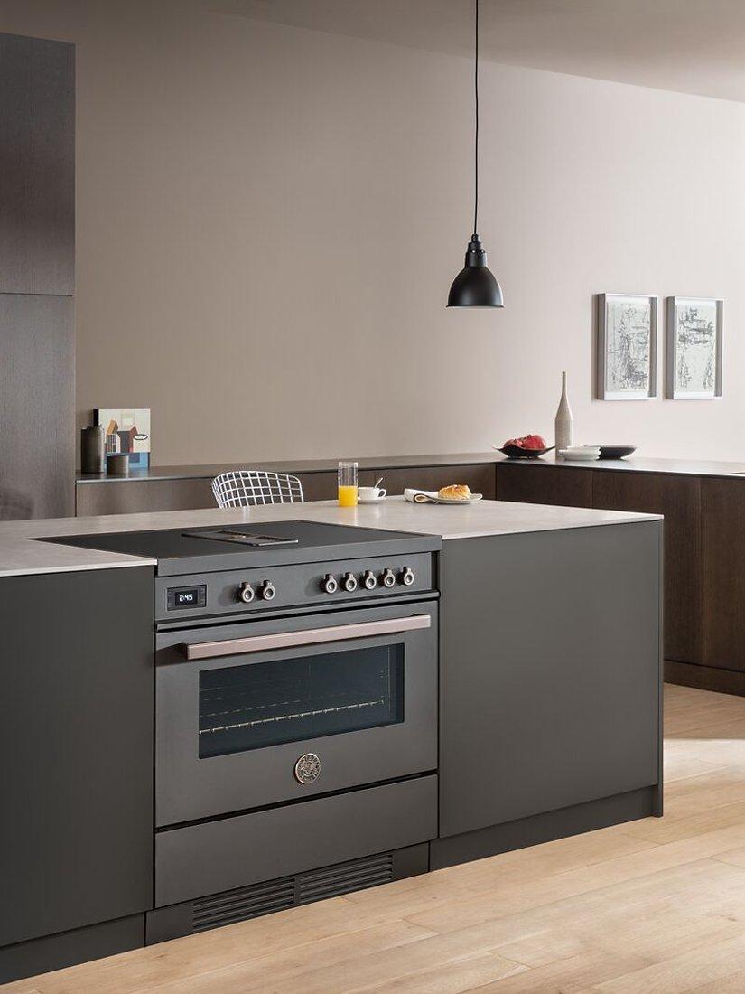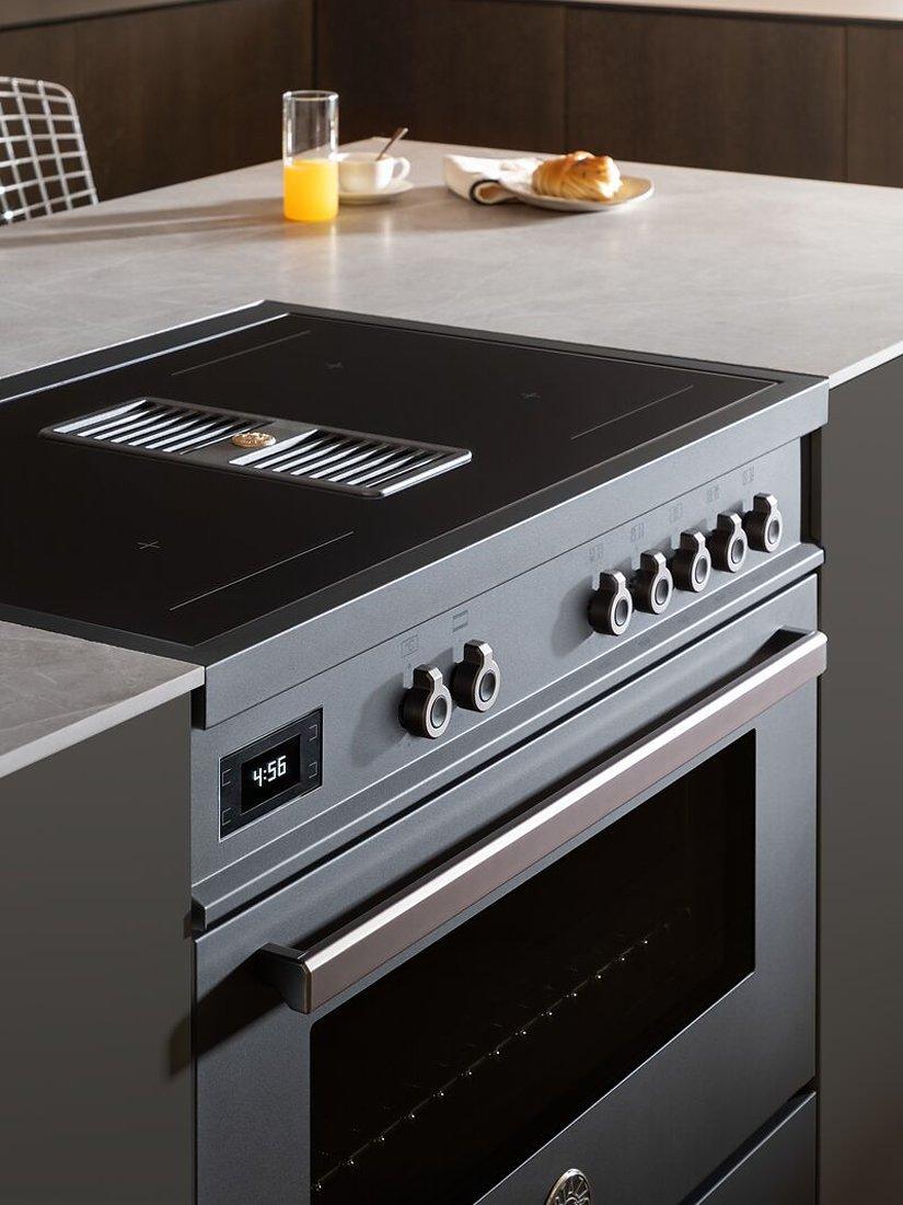 The very first of its kind, the Bertazzoni Air-Tec Cooker has landed - 3 appliances in 1 in a first for freestanding cooking appliances. This stunning appliance has a large capacity 90cm oven, 4 induction cooking zones on the hob including 2 flexi-zones, and integrated extraction through a central venting system.