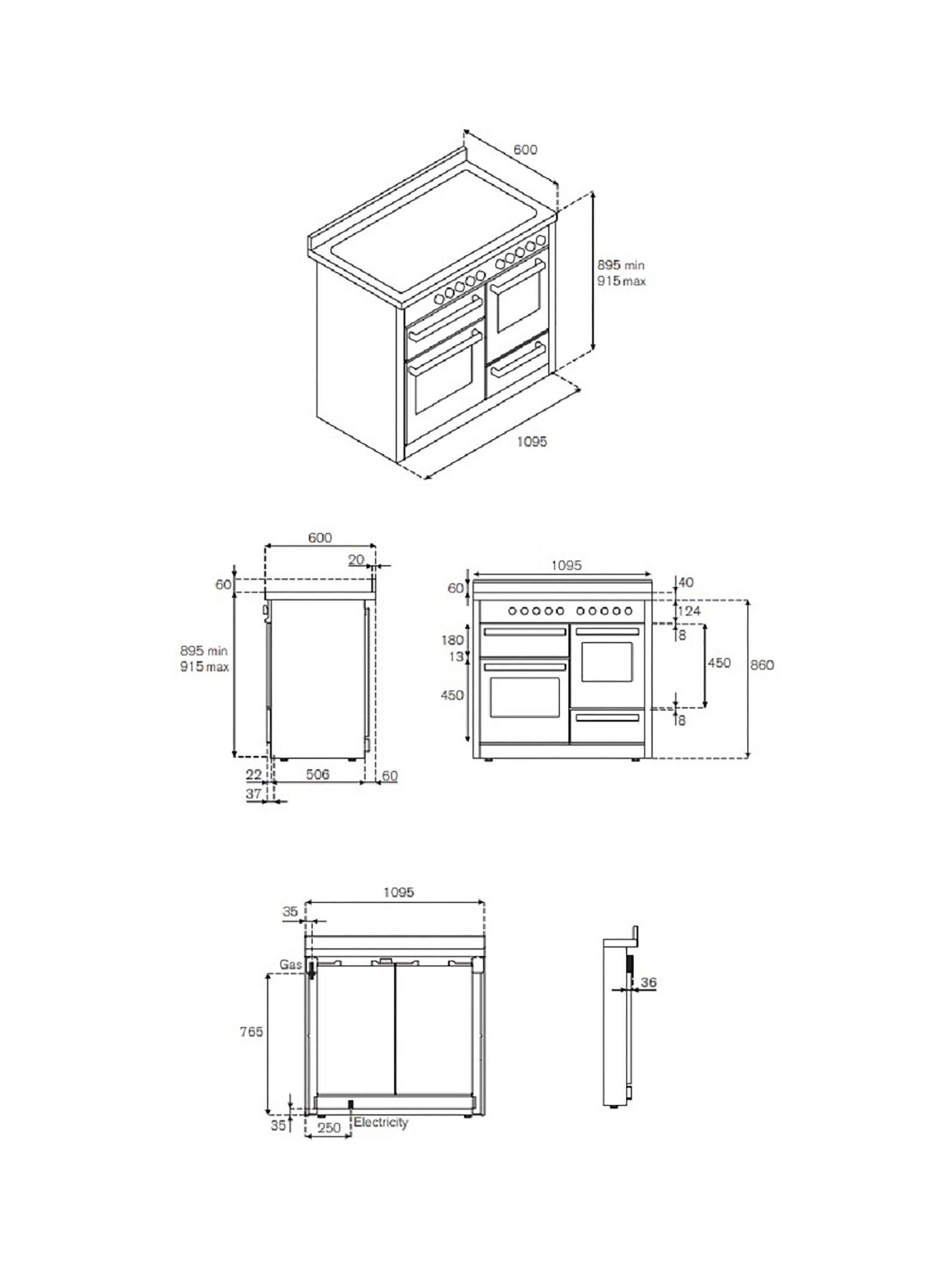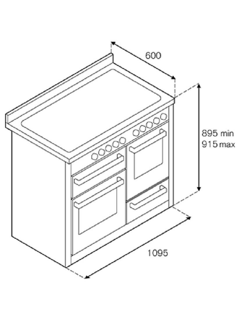 1100mm x 600mmMinimum distance between hob & cooker hood required