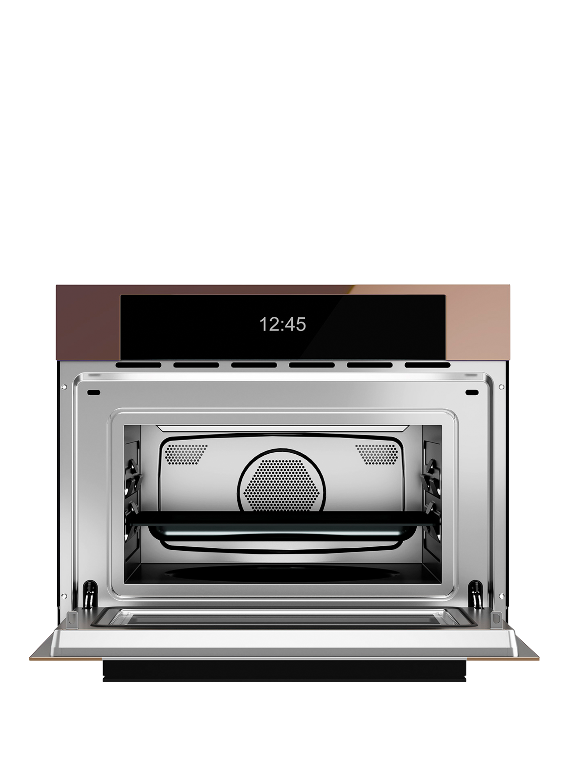 The microwave has five power levels and boost function to significantly reduce cooking times compared to a conventional oven. Controlled with a control knob and full touch TFT display. The door has a soft motion mechanism.