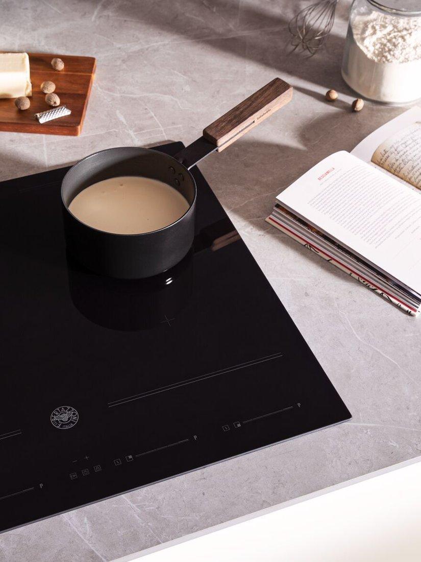 The hob is equipped with 3 specific functions that set exact temperatures for the interested area. The Melting function set the area at 45°C allowing you to melt food without overcooking it; the Keep Warm function set the area at 70 °C to heat the food without drying it; the Boiling function set the area at 85 °C to bring the water in the pot to a boil in the shortest possible time.