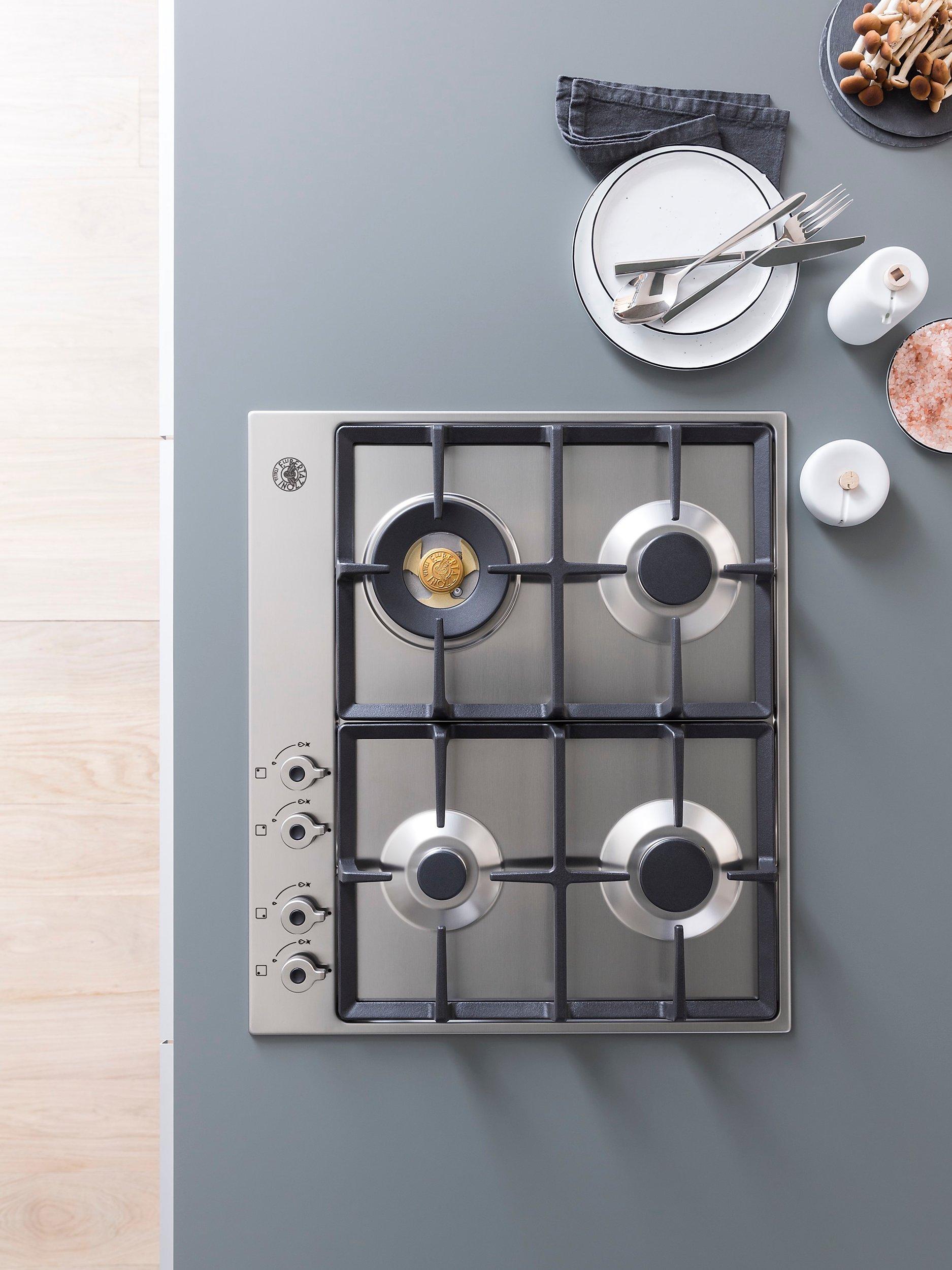 The Bertazzoni P604LPROX gas hob has been created with four brass burners and is finished in stainless steel.
