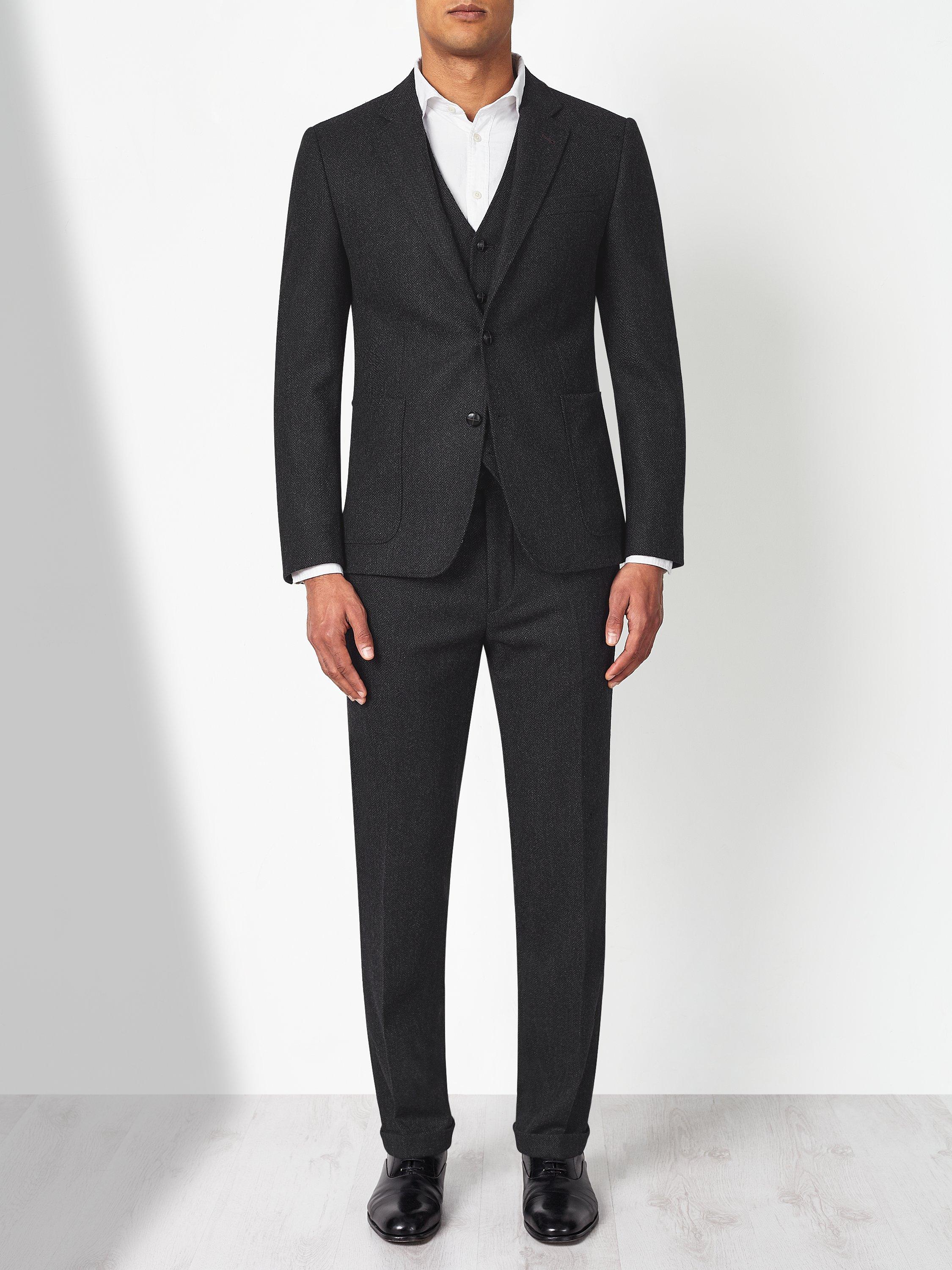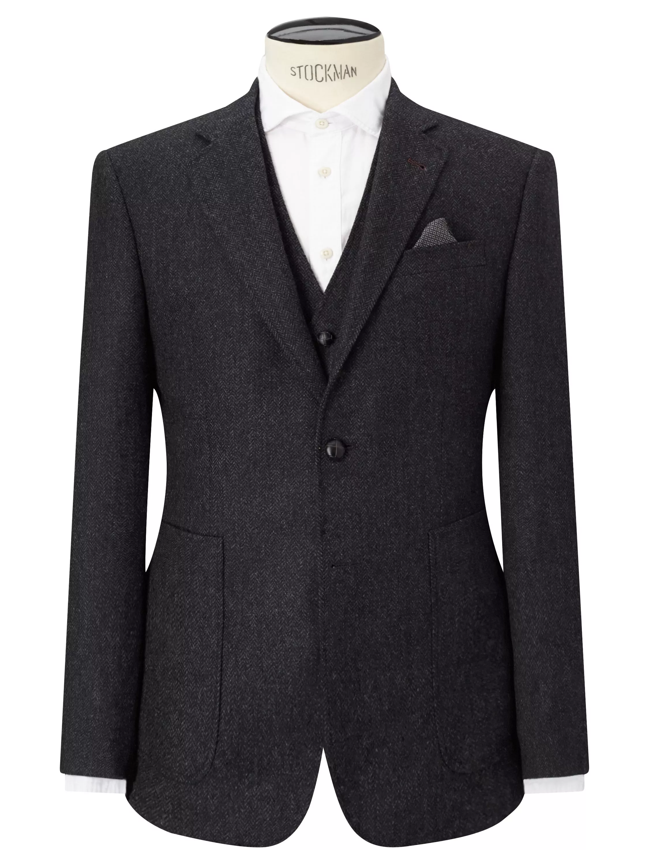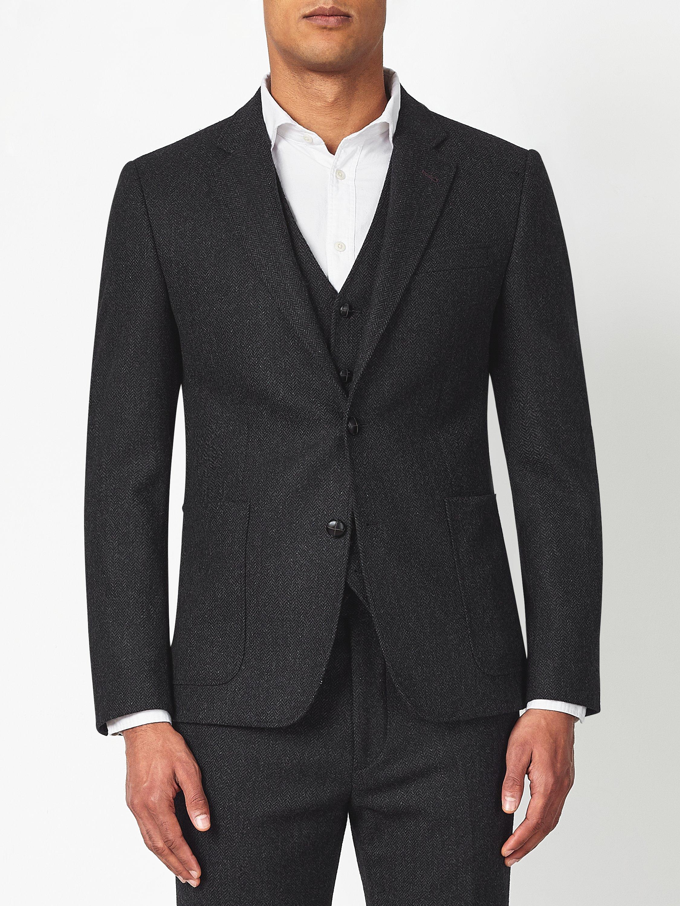 Expertly cut to a tailored fit, this suit jacket features an intricate herringbone weave, a single-breasted two-button front fastening, two large exterior patch pockets, notch lapels, a welt breast pocket, an integrated pocket square, and side vents to the reverse.