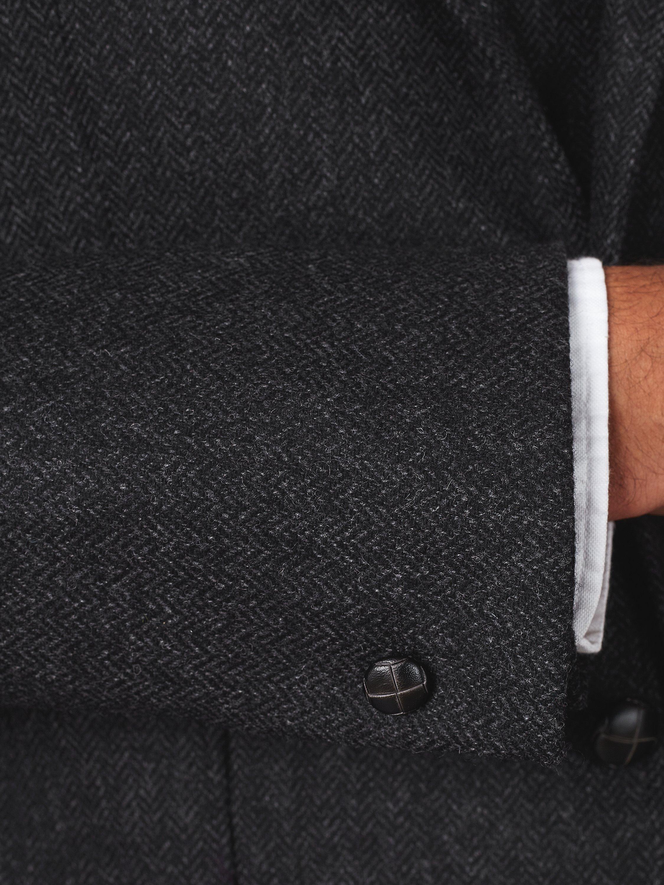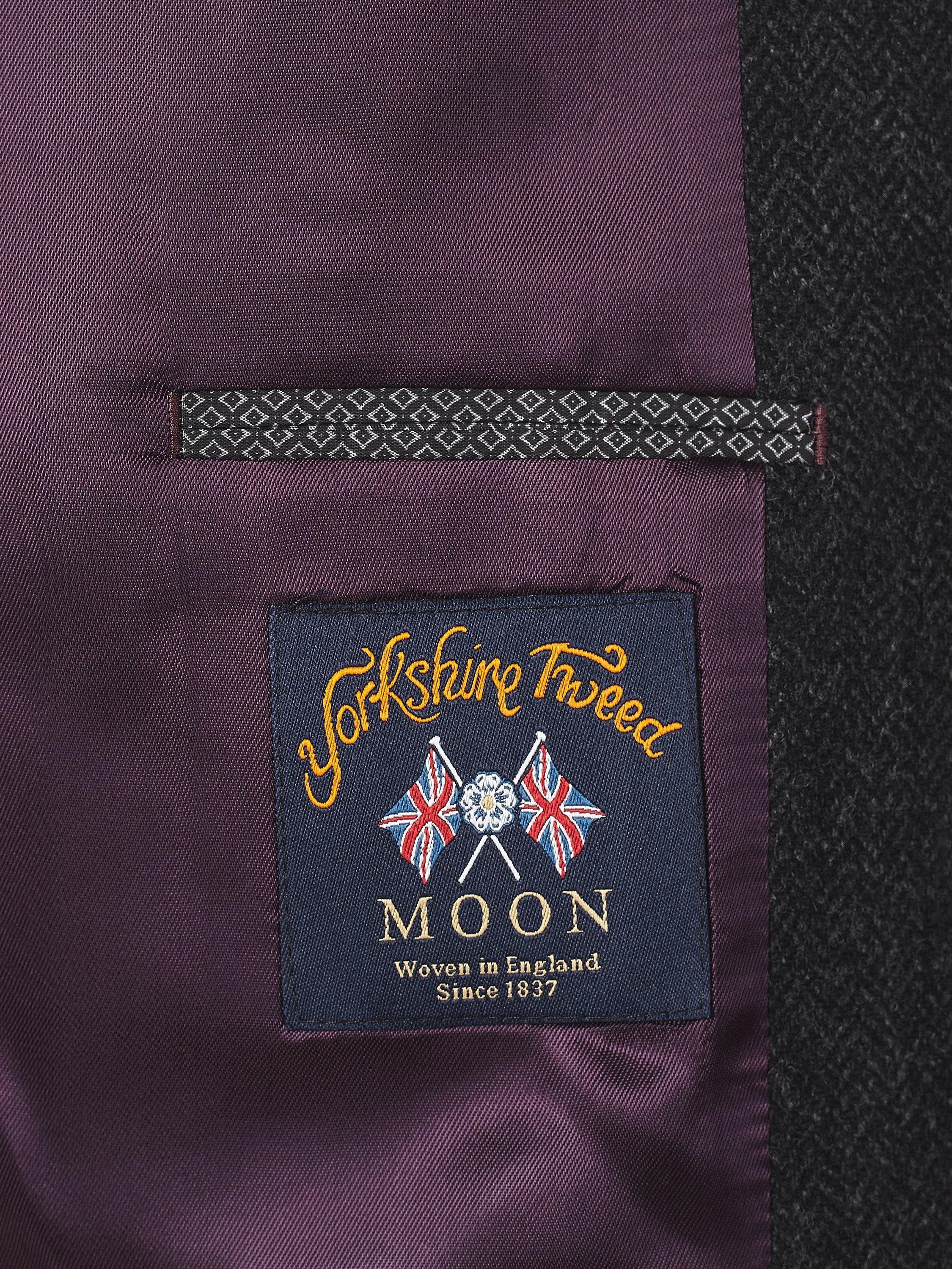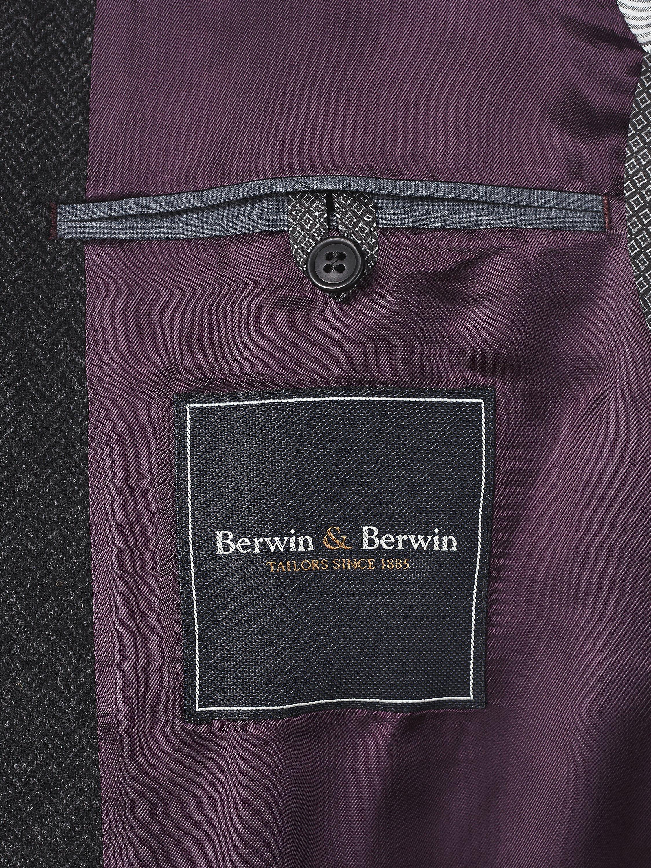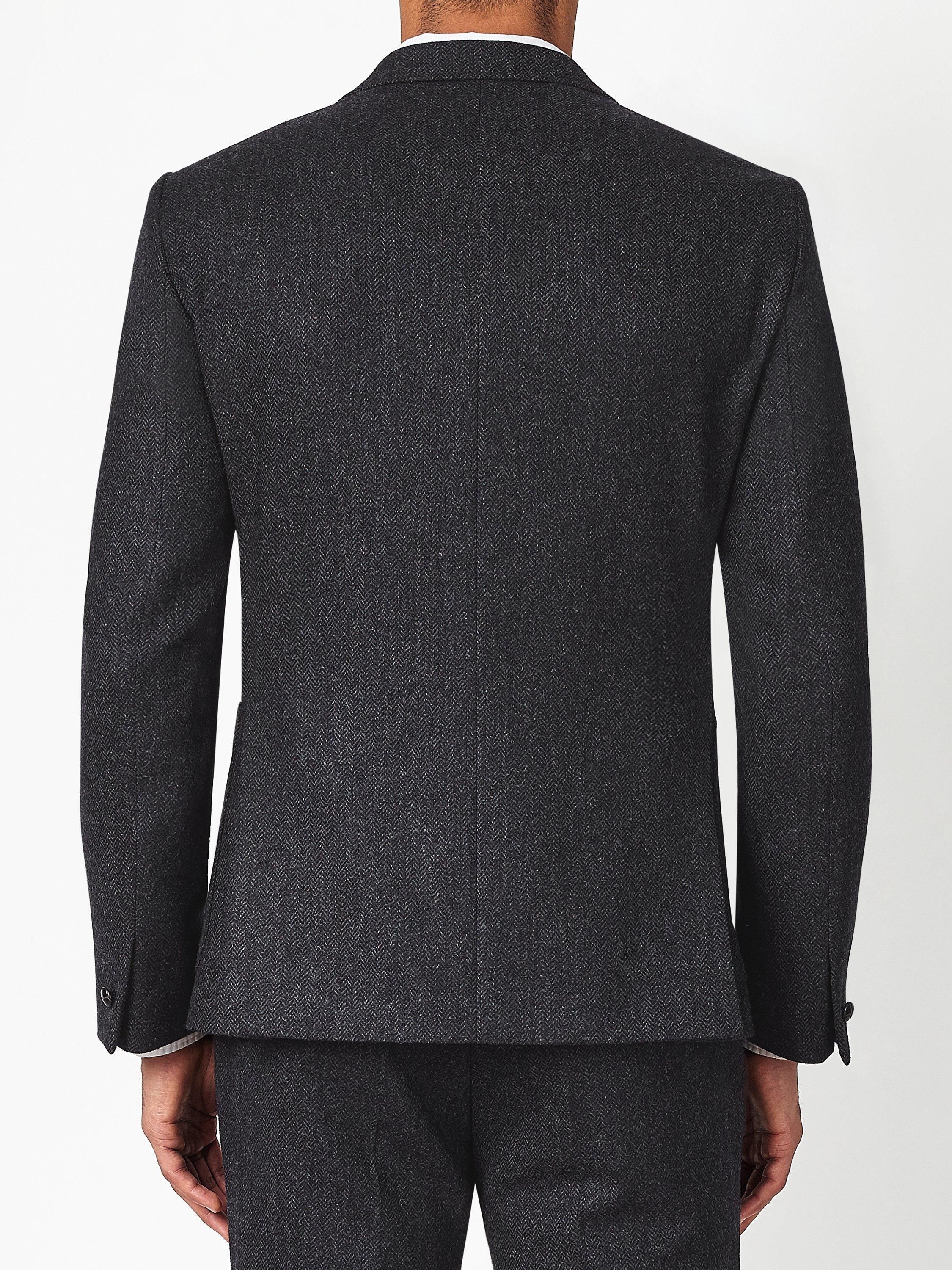Woven in Yorkshire using luxurious wool from renowned English-established tailoring manufacturers Berwin & Berwin, exude formal finesse at the office in this herringbone suit jacket.