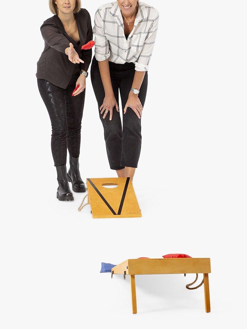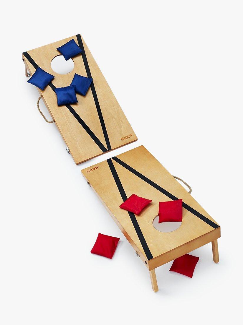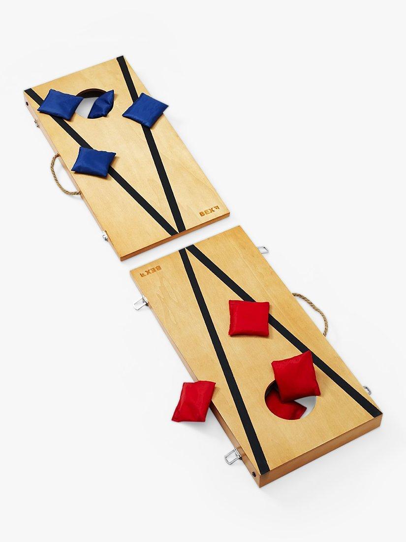 Set the beanbag target game up in your garden, or on the beach and challenge another player (or team) to get all the beanbags through the hole. Ideal for 2 players or teams of up to 4, it's easily transportable and includes 2 targets and 4 red and 4 blue bean bags.