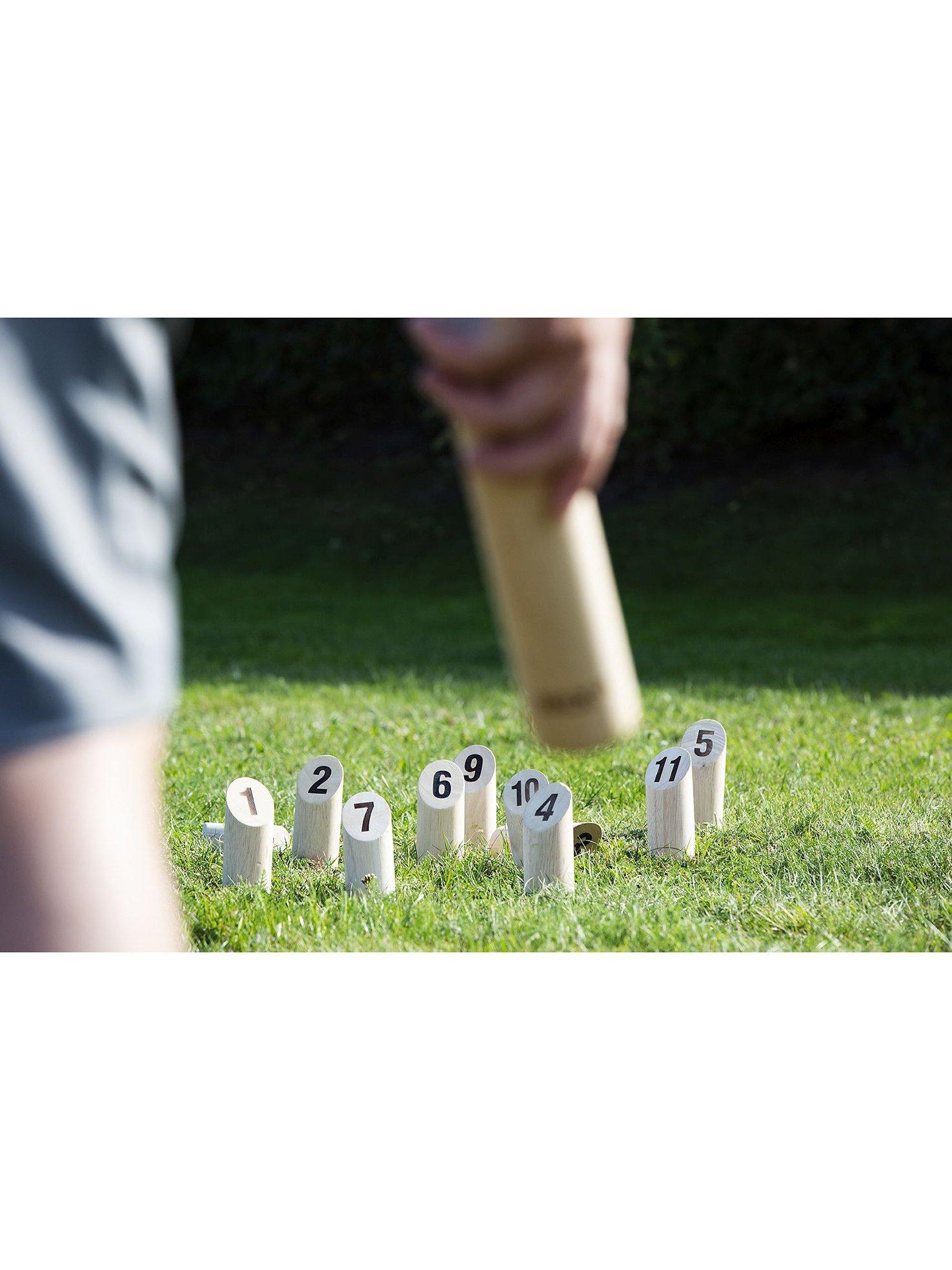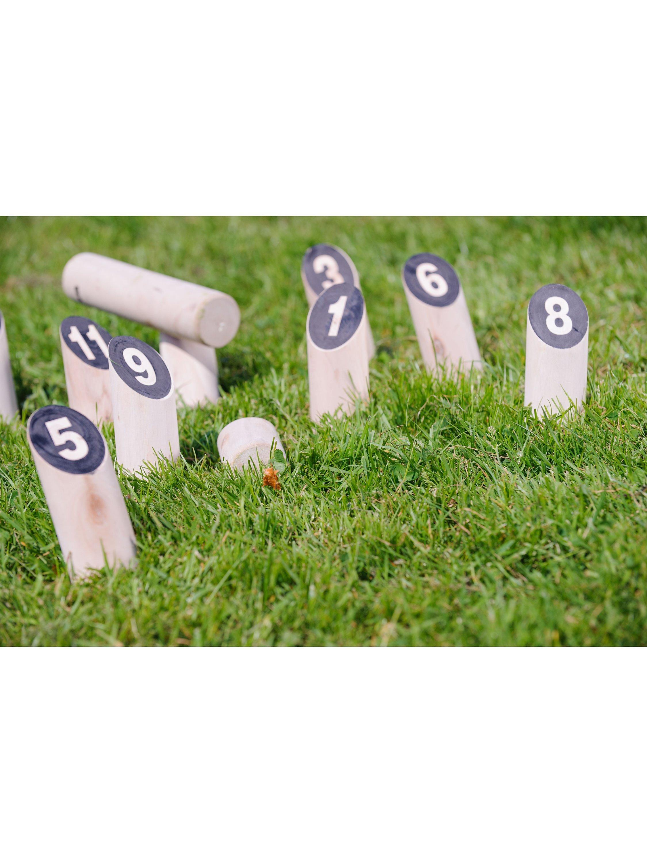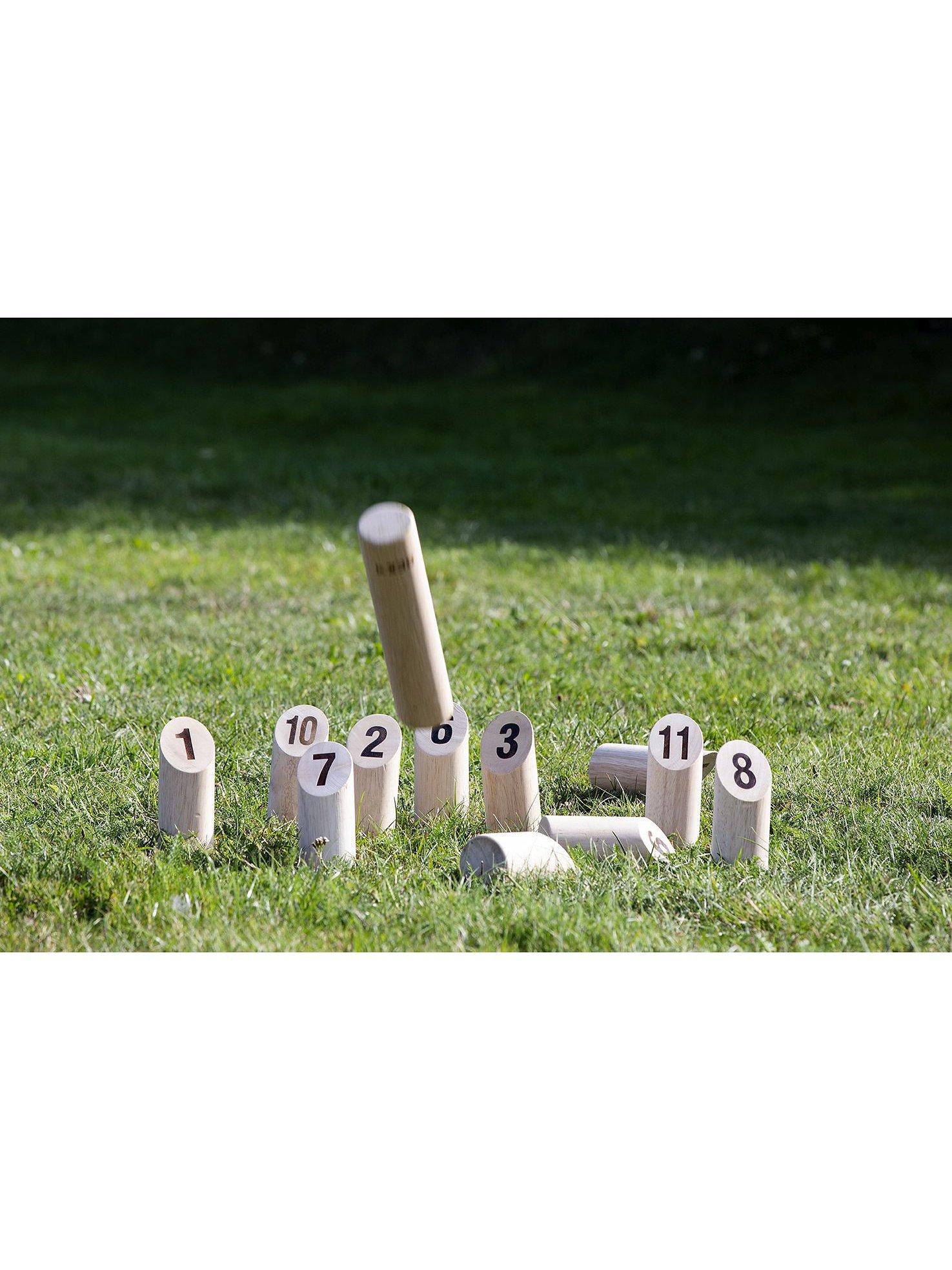Kubb is a classic Viking game that has been played for over 1000 years and is sometimes referred to as Viking chess. The object of Kubb is to knock over wooden blocks by throwing wooden sticks at them. Made from rubber wood, this numbers game is based on the same tactics as the original kubb but with number sticks. Includes 1 throwing stick, 12 number pins, a cotton bag with handles, rules and instructions.