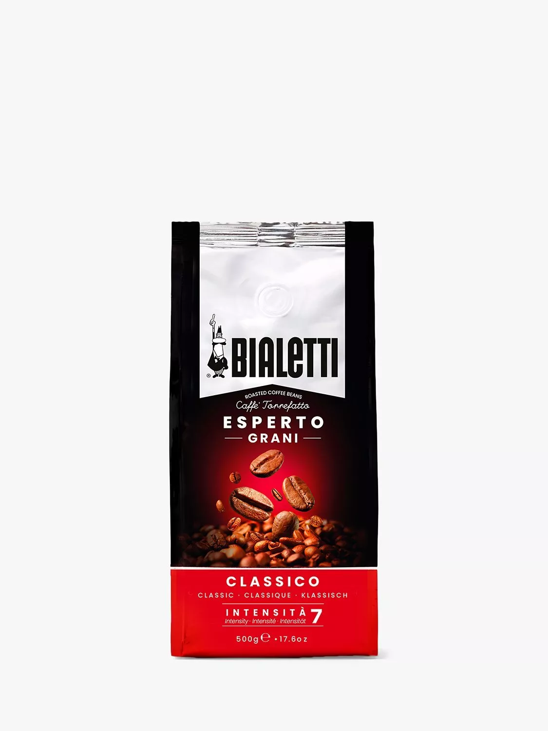 Bialetti's Esperto Grani Classico Whole Bean Coffee is an aromatic and soft blend, characterised by hazelnuts and flowers, sweet aromas which are exalted by a dark roasting. Traditionally roasted in Italy. Intensity: 7.