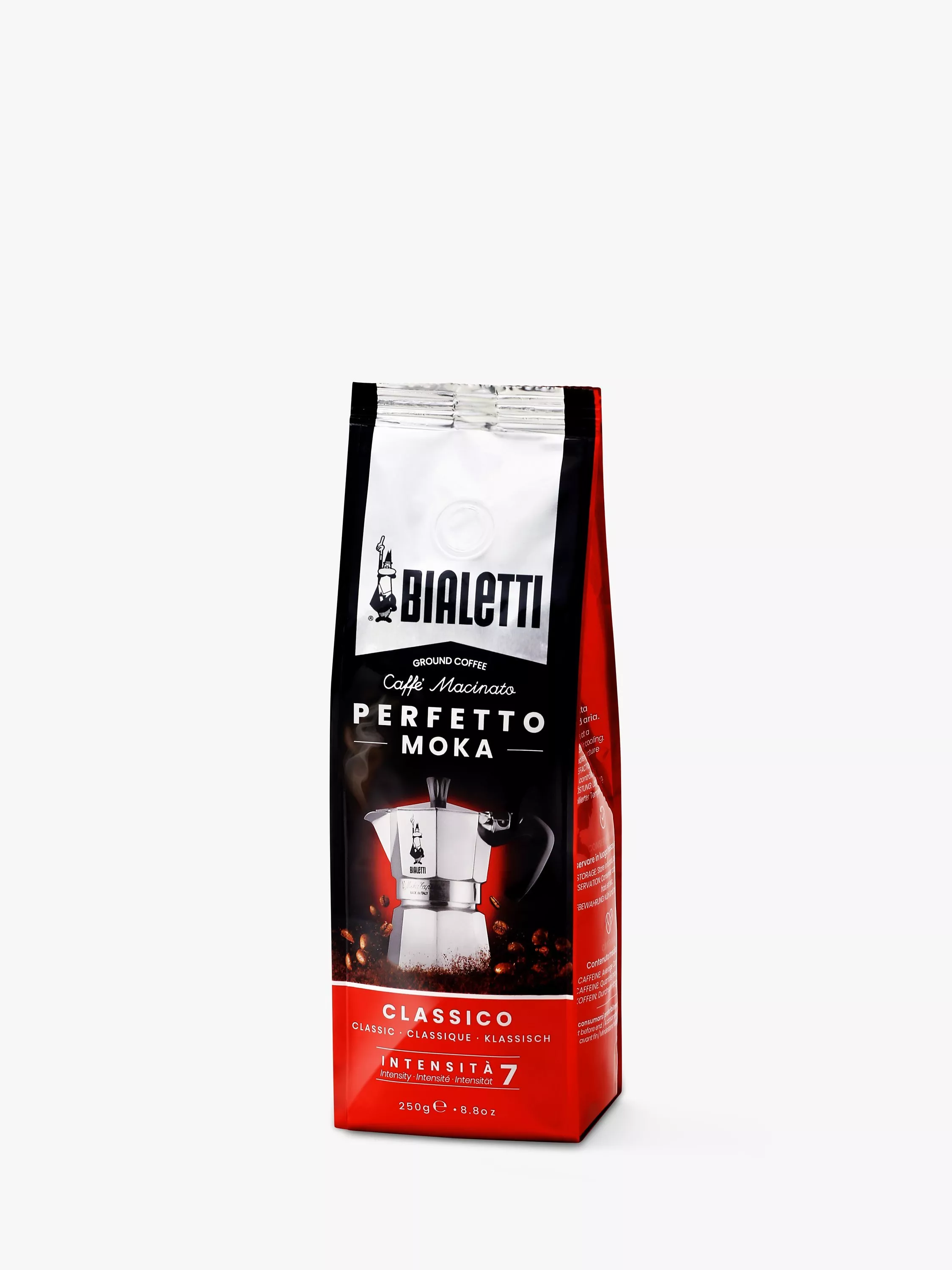 Bialetti's Moka Classico ground coffee is a soft and aromatic blend from 100% arabica coffee beans, perfectly suited to Bialetti's Moka coffee maker. Savour it slowly to enjoy all its delicate aromatic notes. The characteristic presence of Excelso-graded beans from Colombia gives sweet hints of flowers and dried fruit, enhanced by a slow to medium roasting and traditionally roasted in Italy.