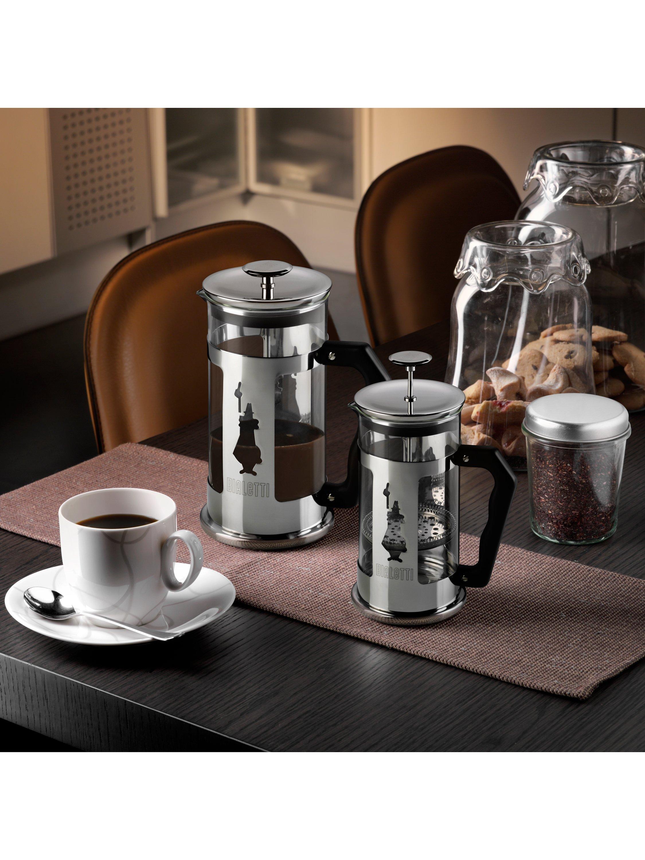 A well-crafted Preziosa coffee press from coffee experts Bialetti, with an exclusive Bialetti handle which recalls the iconic Moka Express. It's made from 18/10-grade stainless steel and thermal shock-resistant borosilicate glass. For use with ground coffee beans.