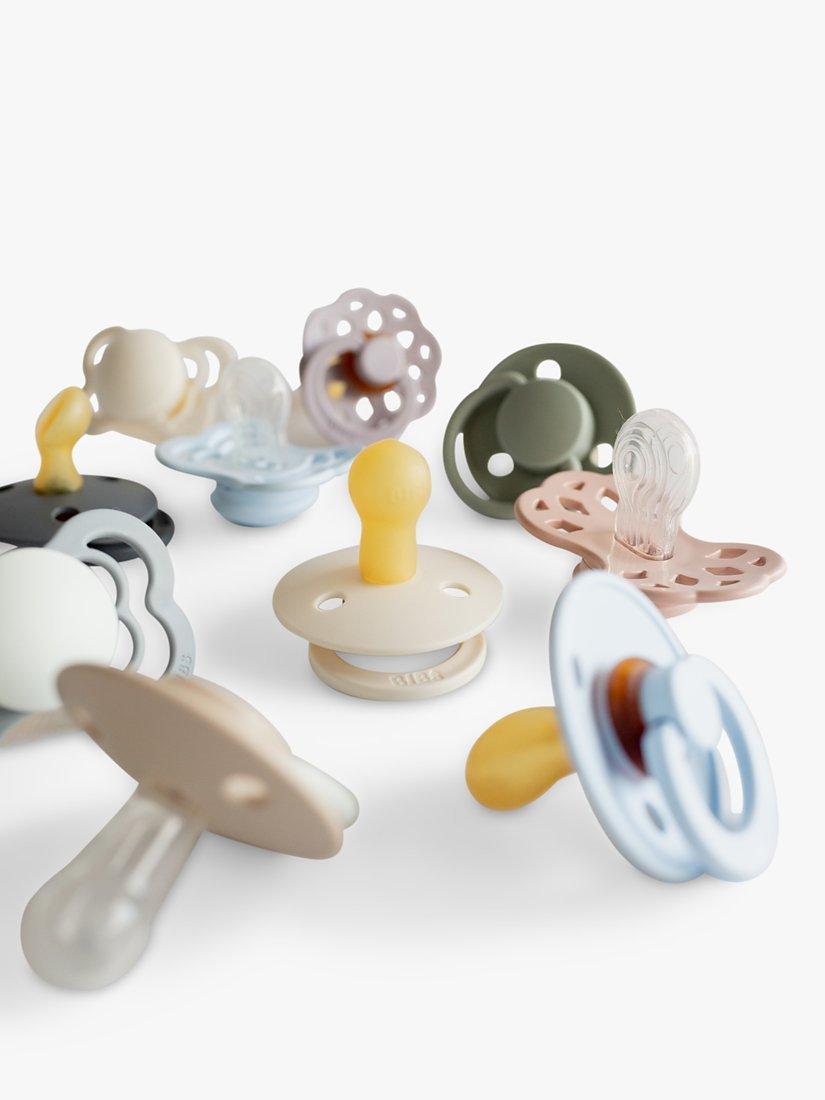 BIBS Colour is the original BIBS soother and has been on the market for over 40 years. It has the signature round BIBS shield with three vent holes and round BIBS engraved handle ring. The shield is carefully designed to curve away from the sensitive and delicate skin around the baby’s mouth to prevent moisture build-up. The shield is made of food-grade material.