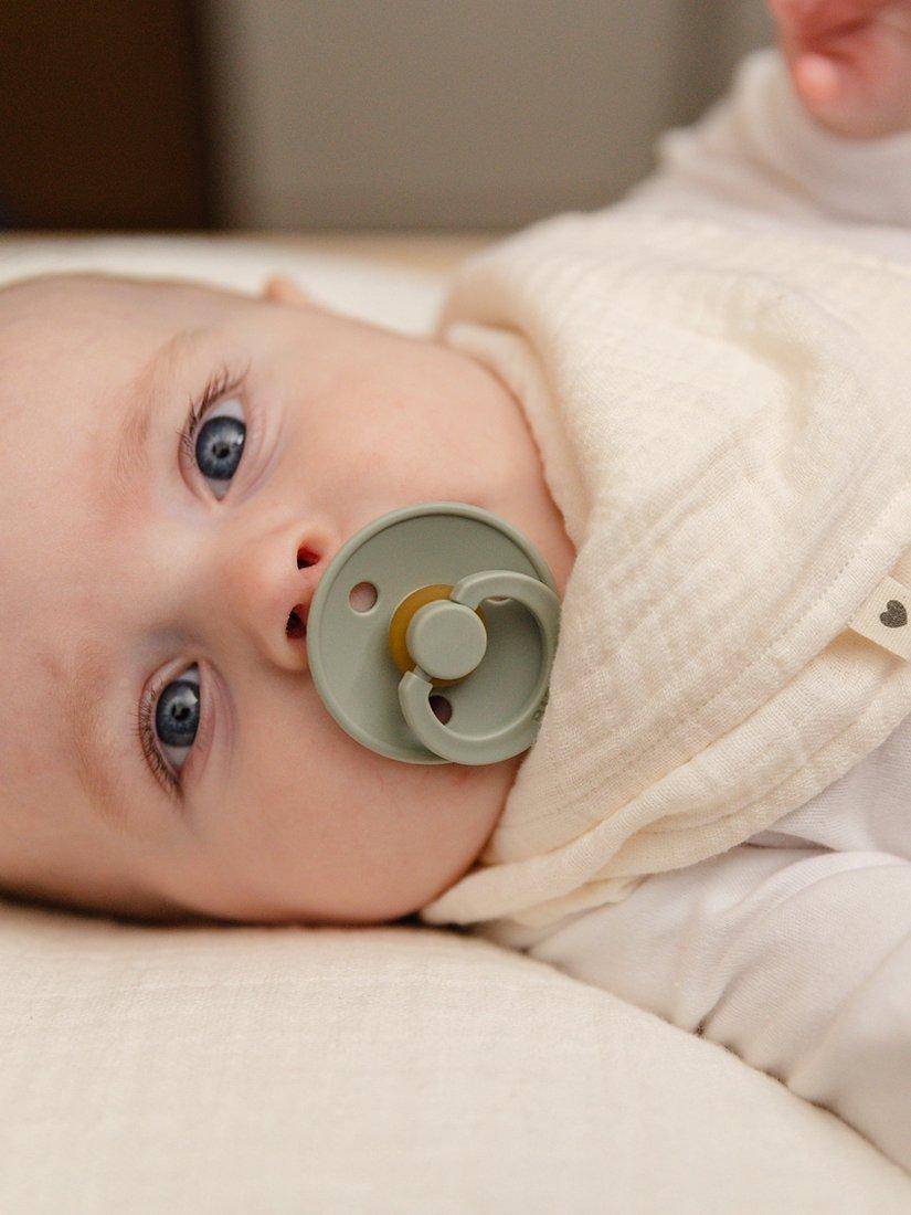BIBS Colour is the original BIBS soother and has been on the market for over 40 years. It has the signature round BIBS shield with three vent holes and round BIBS engraved handle ring. The shield is carefully designed to curve away from the sensitive and delicate skin around the baby’s mouth to prevent moisture build-up. The shield is made of food-grade material.