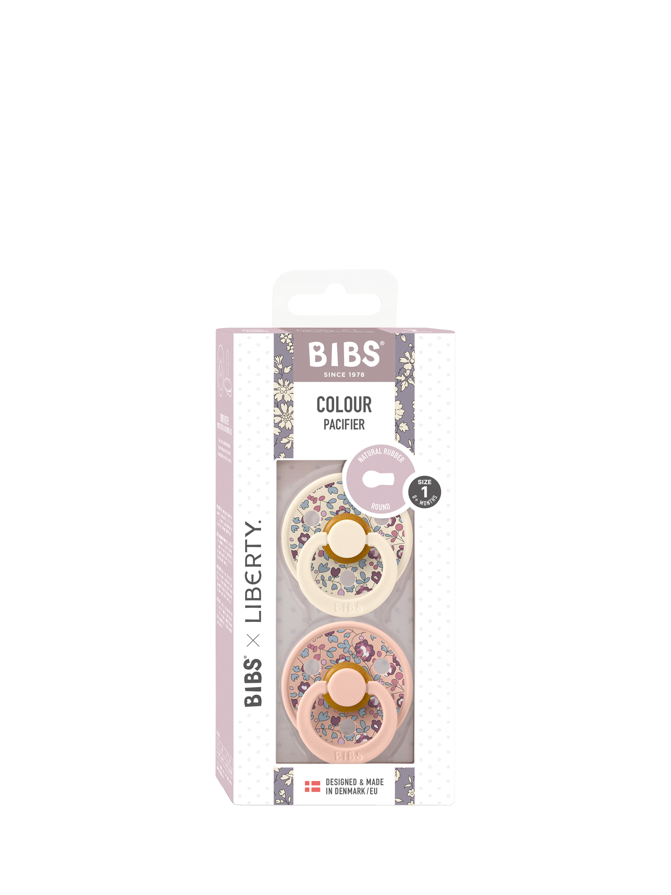 BIBS is the original BIBS soother and has been on the market for over 40 years. It has the signature round BIBS shield with three vent holes and round BIBS engraved handle ring. The shield is carefully designed to curve away from the sensitive and delicate skin around the baby’s mouth to prevent moisture build-up. The shield is made of food-grade material.